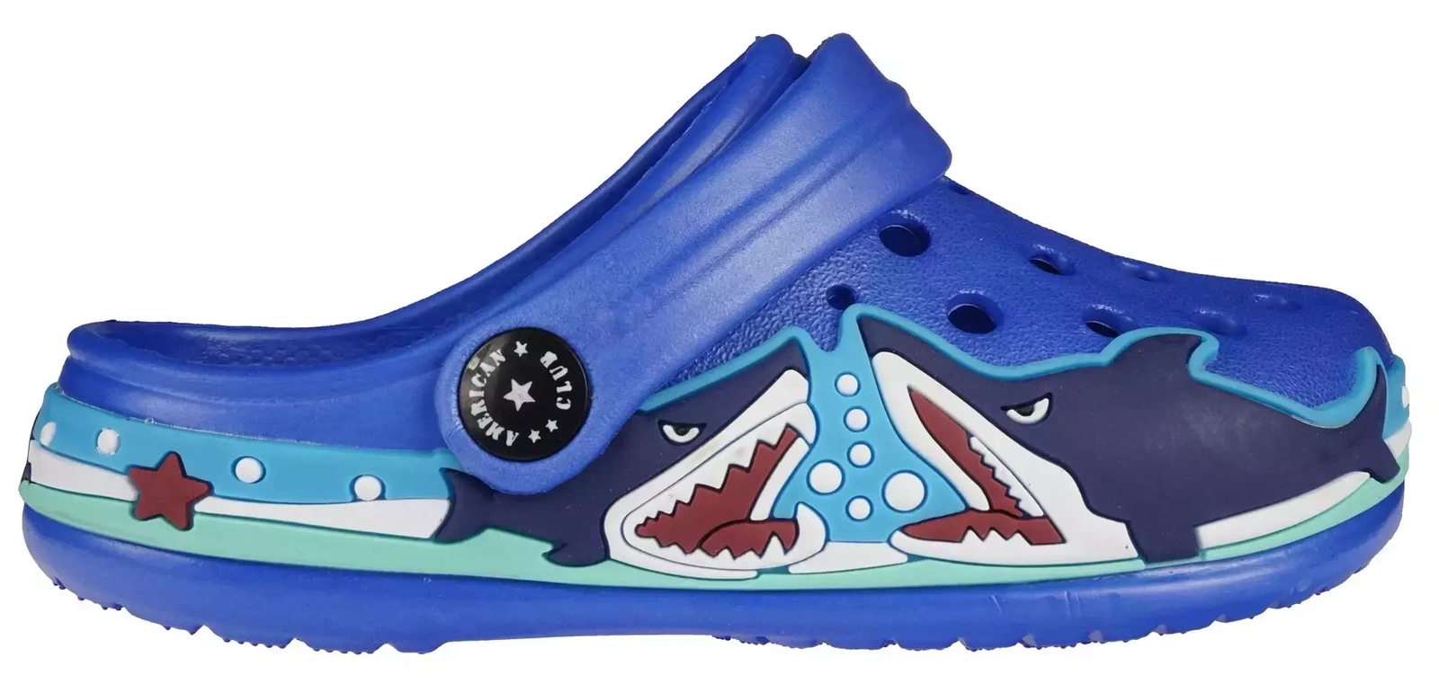 Dziecięce klapki basenowe firmy American Club w kolorze niebieskim. Wykonane w bardzo ciekawym i ładnym stylu w całości z pianki, co sprawia że są one niesamowicie lekkie wygodne i przyjazne dla skóry. Model ten to doskonały wybór obuwia letniego do zabawy na plaży lub do użytku codziennego. Ich piankowa, bieżnikowana podeszwa zapewni stabilność i zapobiegnie ślizganiu. Model ten wyposażony został w pasek, który trzyma piętę. Dziurki na całej powierzchni zapewniają odpowiednią wentylacje stopie a antypoślizgowa podeszwa gwarantuje bezpieczeństwo.