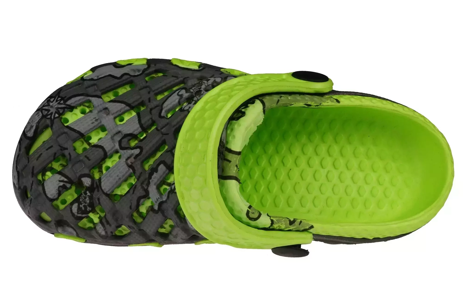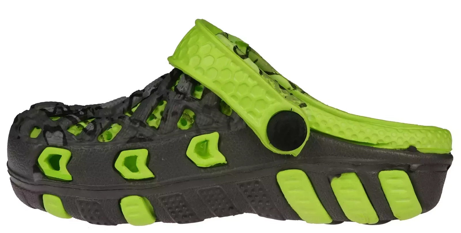 Dziecięce klapki basenowe firmy EMAX Club w kolorze zielonym. Wykonane w bardzo ciekawym i ładnym stylu w całości z pianki, co sprawia że są one niesamowicie lekkie wygodne i przyjazne dla skóry. Model ten to doskonały wybór obuwia letniego do zabawy na plaży lub do użytku codziennego. Ich piankowa, bieżnikowana podeszwa zapewni stabilność i zapobiegnie ślizganiu. Model ten wyposażony został w pasek, który trzyma piętę. Dziurki na całej powierzchni zapewniają odpowiednią wentylacje stopie a antypoślizgowa podeszwa gwarantuje bezpieczeństwo.