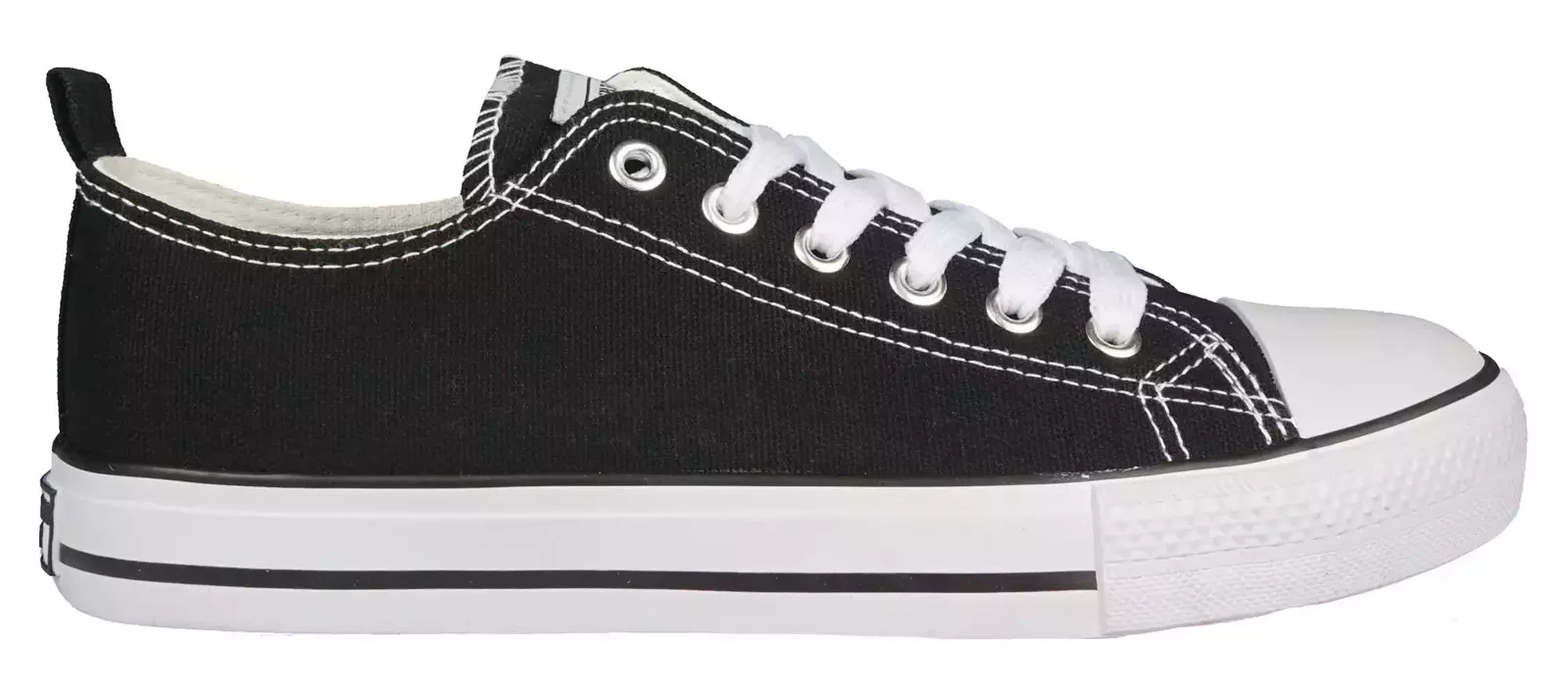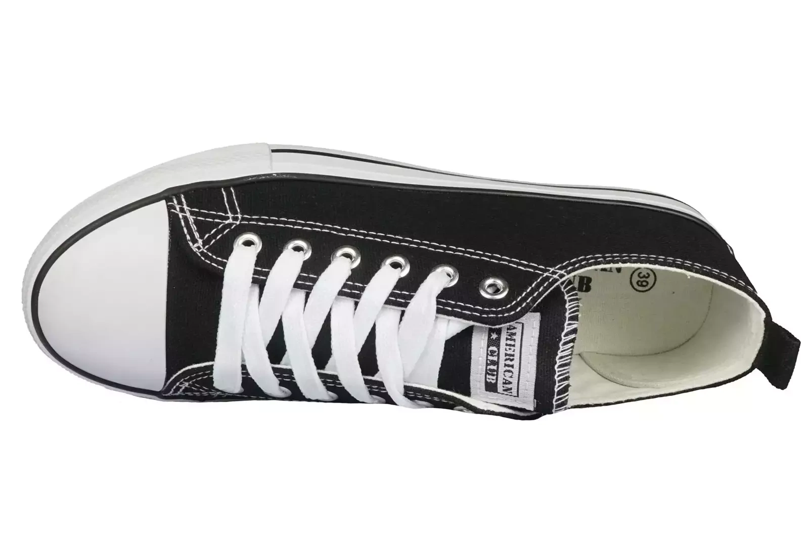 Tenisówki męskie w kolorze czarnym, których producentem jest firma American Club. Zostały wykonane z materiałów tekstylnych o bardzo dobrej jakości, model jest solidny, schludnie wykonany i dobrze leży na nodze. Buty posiadają grubą, gumową podeszwę co zapewnia im trwałość i bardzo dobrą przyczepność do podłoża. Wnętrze jest bardzo delikatne i przyjazne dla skóry. Tenisówki te są lekkie i wygodne. Potrzebujesz obuwia do pracy? Do szkoły? Po prostu do użytku na co dzień? Ten model jest stworzony dla ciebie.