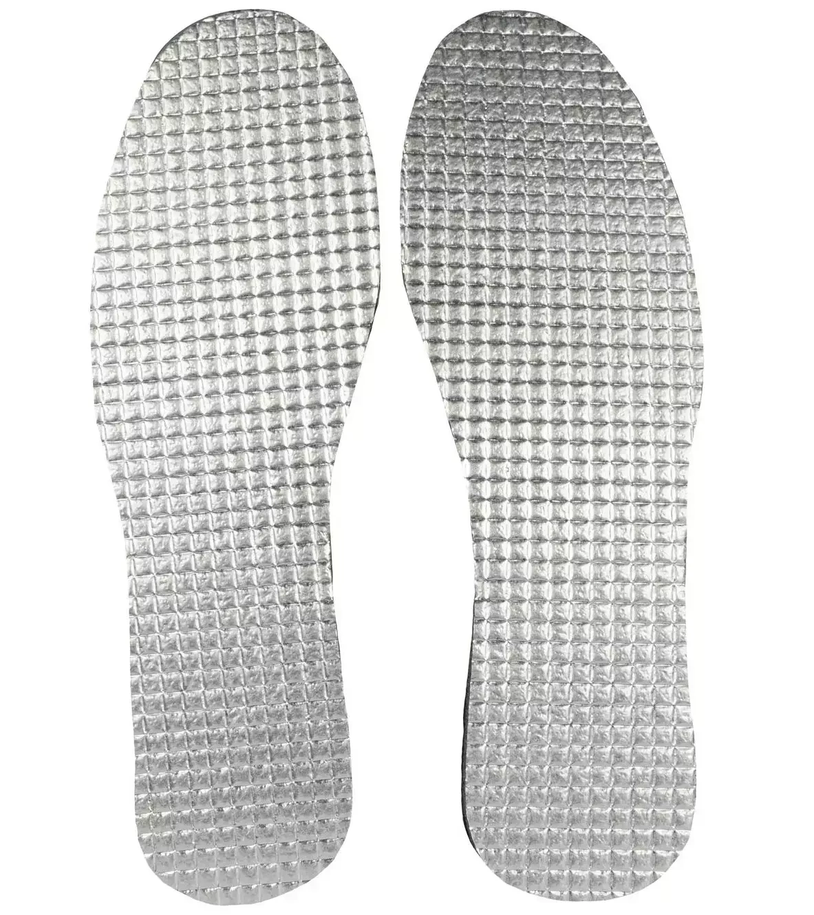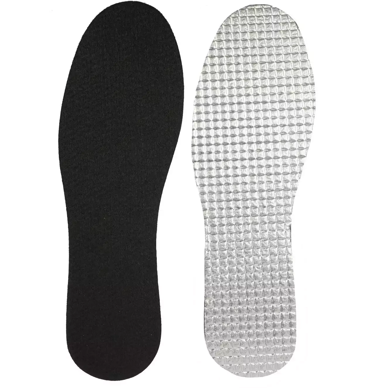 Męskie wkładki do butów firmy RAD-BUT. Powierzchnia zrobiona z delikatnego włókna filcowego, od spodu posiadają aluminiową warstwę. Mają one za zadanie zabezpieczyć stopę w chłodne, deszczowe i mroźnie dni przed zimnem. Nadają się do stosowania w każdym rodzaju obuwia krytego.