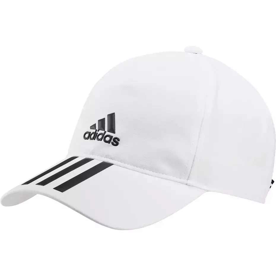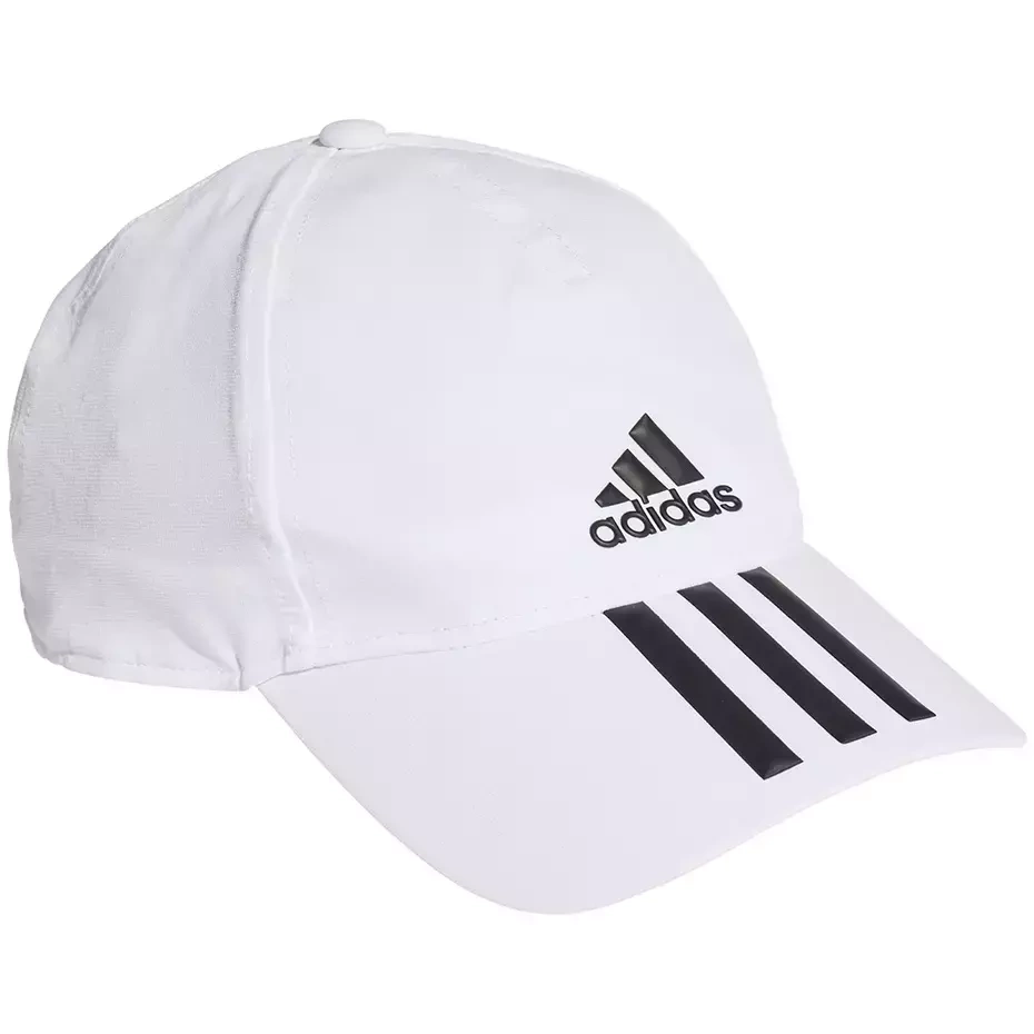Czapka z daszkiem męska marki Adidas z serii Aeroready Baseball Cap 3 Stripers w kolorze białym z czarnymi paskami
