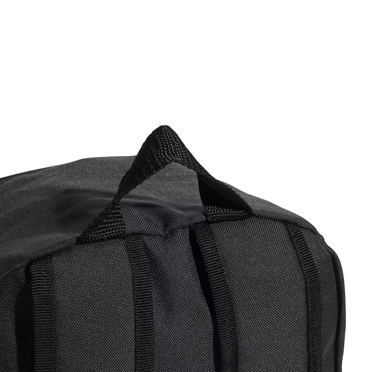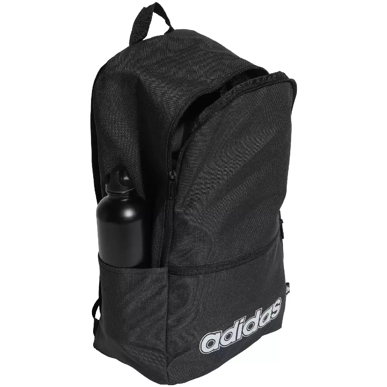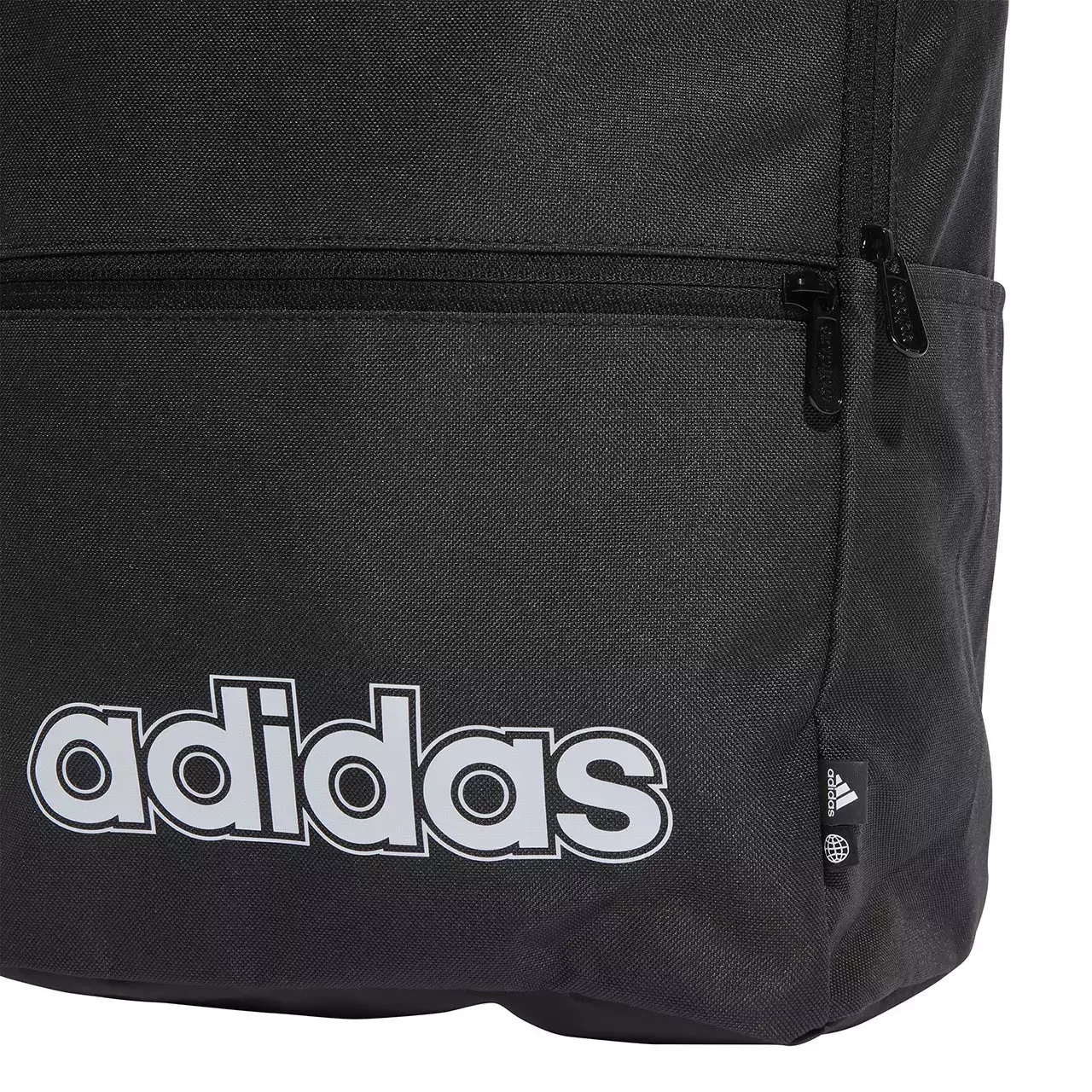 Oryginalny plecak Adidas z serii Classic Foundation, w czarnym kolorze o pojemności 20 litrów. Warstwa wierzchnia i podszewka wykonana jest w 100% z jakościowego poliestru, a wyściełanie to pianka z polietylenu. Wysokiej jakości materiały wykorzystane do produkcji plecaka szkolnego gwarantują trwałość i wysoki komfort użytkowania. Czarny plecak posiadaja dużą komorę główną zapinaną na podwójny zamek błyskawiczny, co pozwala na przechowywanie dokumentów A4. Wewnątrz podziałka umożliwiająca odseparować laptopa lub inne akcesoria. Dwie zewnętrzne kieszenie boczne pomieszczą napoje lub przekąski. Dodatkowo, kieszeń na przodzie zapinana na zamek, która jeszcze bardziej ułatwia segregację przedmiotów i dbanie o organizację, idealna na klucze, portfel, telefon lub inne drobiazgi. Szelki z regulacją pozwalają na idealne dopasowanie i gwarantują komfort użytkowania, a wyściełane dno z grubszego materiału zapobiega dostawaniu się wilgoci i przedłuża żywotność produktu. Górny uchwyt zapewnia łatwe powieszenie plecaka lub przenoszenie go w dłoni. Plecak jest wykonany z materiałów pochodzących z recyklingu i zawiera co najmniej 40% z odzysku. Kupując ten produkt przyczyniasz się do dbania o środowisko. Plecak o prostej konstrukcji i ciemnej kolorystyce urozmaicony został białym logiem marki Adidas. Klasyczny wygląd sprawdzi się w szkole, pracy lub na treningu lub wycieczce. Produkt jest nowy, posiada oryginalne metki.