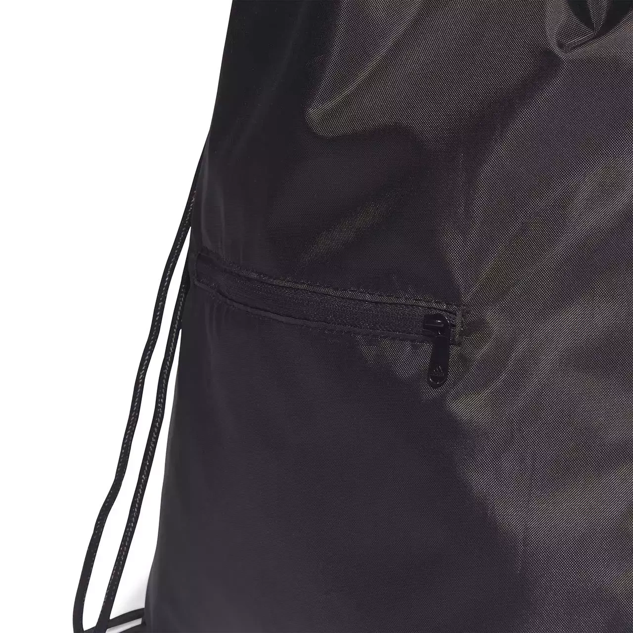 Worek gimnastyczny marki Adidas z serii Power, w kolorze czarnym. Torba wykonana jest z wysokiej jakości poliestru, który poprawia odporność na zniszczenia i gwarantuje wytrzymałość produktu. Czarny worek idealnie sprawdzi się w przenoszeniu obuwia lub odzieży sportowej, jak również innych przedmiotów codziennego użytku. Dużą zaletą produktu jest dodatkowa kieszeń zewnętrzna zapinana na zamek, w której można schować najpotrzebniejsze drobiazgi np. klucze czy portfel. Główna komora zapinana jest za pomocą ściągacza z podwójnego sznurka, który pełni również funkcje szelek. Model ten jest wykonany z materiałów pochodzących z recyklingu i zawiera nie mniej niż 60% materiałów z odzysku. Kupując ten produkt przyczyniasz się do dbania o środowisko. Worek na obuwie Adidas jest idealnym wyborem na siłownie, wycieczkę czy do szkoły. Sprawdzi się nie tylko do przechowywania obuwia ale również możesz do niego zapakować przedmioty potrzebne w wielu sytuacjach. Czarna kolorystyka i klasyczne logo Firmy sprawiają, że model ten będzie pasować do większości stylizacji. Produkt jest nowy, posiada oryginalne metki.