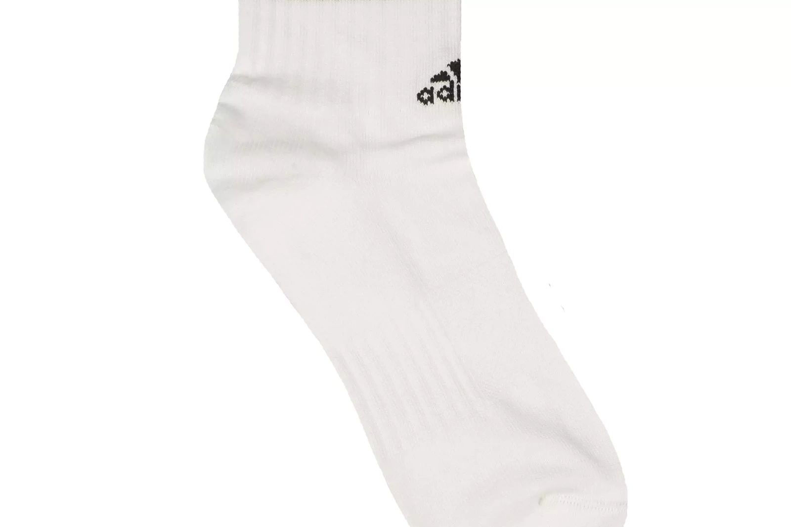 Skarpetki marki Adidas z kolekcji Cushioned Crew Socks w kolorze białym z czarnym logiem i trzema paskami charakterystycznymi dla marki Adidas, pakowane po 3 pary w opakowaniu. Dzianina wykonana z połączenia wysokiej jakości materiałów gwarantuje długotrwałość i komfort użytkowania na najlepszym poziomie. Wysoka zawartość bawełny odpowiada za przewiewność i miękkość skarpetki, a poliester poprawia odporność na zniszczenia. Co więcej poliester i nylon pochodzi z recyklingu, co pozwala na zmniejszenia emisji szkodliwych substancji i dbanie o środowisko. Co najmniej 70% produktu pochodzi z materiałów pochodzących z recyklingu. Skarpety wysokie Adidas posiadają amortyzację podeszwy, co dba o piętę i palce nawet podczas wykonywania wymagającej aktywności fizycznej. Szwy są połączone na palcach, a wsparcie w podbiciu pomaga w stabilizacji podczas ruchu, jak również zapobiega zwijaniu się materiału. Wysokie skarpetki Adidas do łydki są świetnym wyborem przy wykonywaniu sportów, jak również idealnie do codziennego użytkowania. Trzypak w klasycznej białej kolorystyce został urozmaicony logiem Adidas i trzema paskami, dzięki czemu pasuje do wielu stylizacji i dodaje sportowego charakteru. Produkt jest nowy, posiada oryginalne metki.