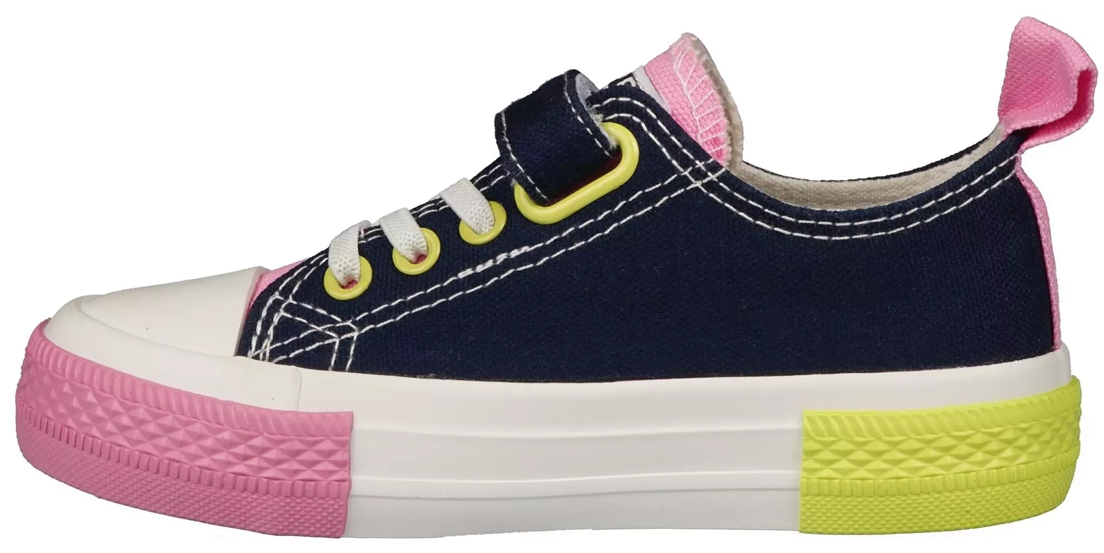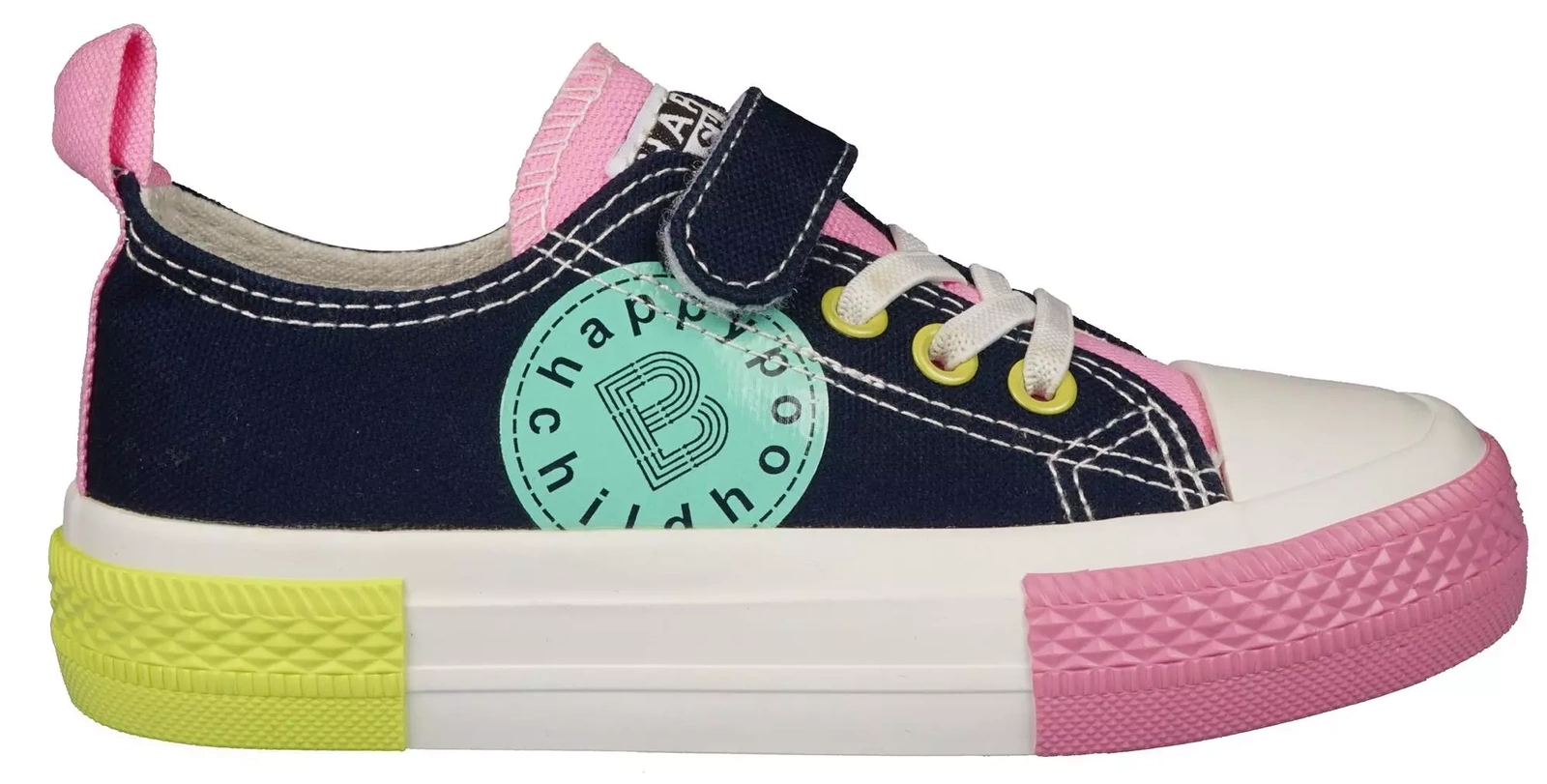 Tenisówki dziecięce w wielokolorowe, których producentem jest firma BESSKY. Zostały wykonane z materiałów tekstylnych o bardzo wysokiej jakości, model jest solidny, schludnie wykonany i dobrze leży na nodze. Buty posiadają grubą, gumową podeszwę co zapewnia im trwałość i bardzo dobrą przyczepność do podłoża. Ich klasyczna budowa urozmaicona została ciekawymi przeszyciami, które przyciągają uwagę oraz w nietypowej kolorystyce co gwarantuje oryginalność. Zapięcie na rzep ułatwia i znacznie przyspiesza zakładanie obuwia przez dzieci. Wnętrze jest bardzo delikatne i przyjazne dla skóry dzięki czemu noga się nie męczy nawet po korzystaniu z nich przez dłuższy czas. Tenisówki te są lekkie i wygodne. Obuwie nada się idealnie do szkoły czy używania na co dzień.