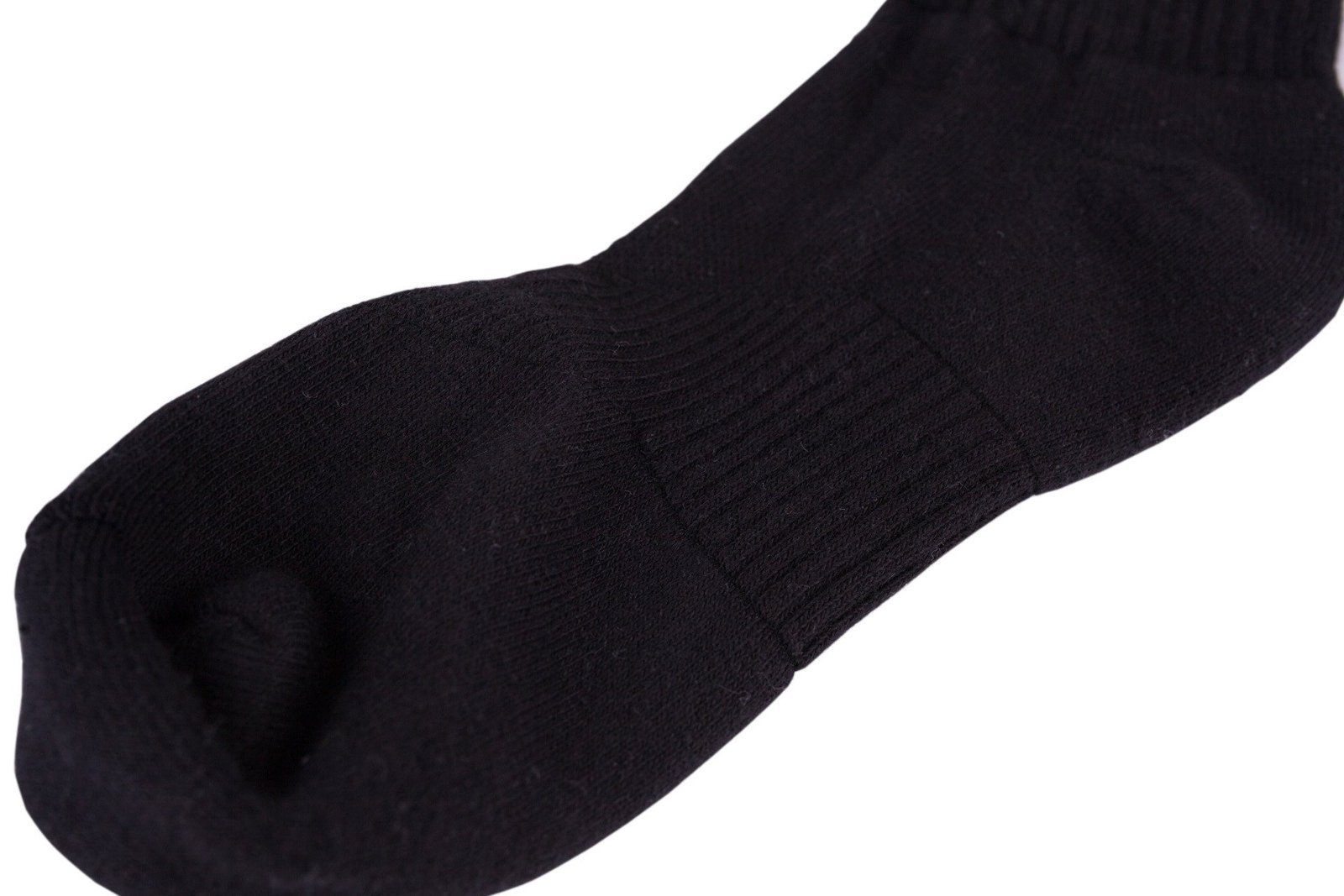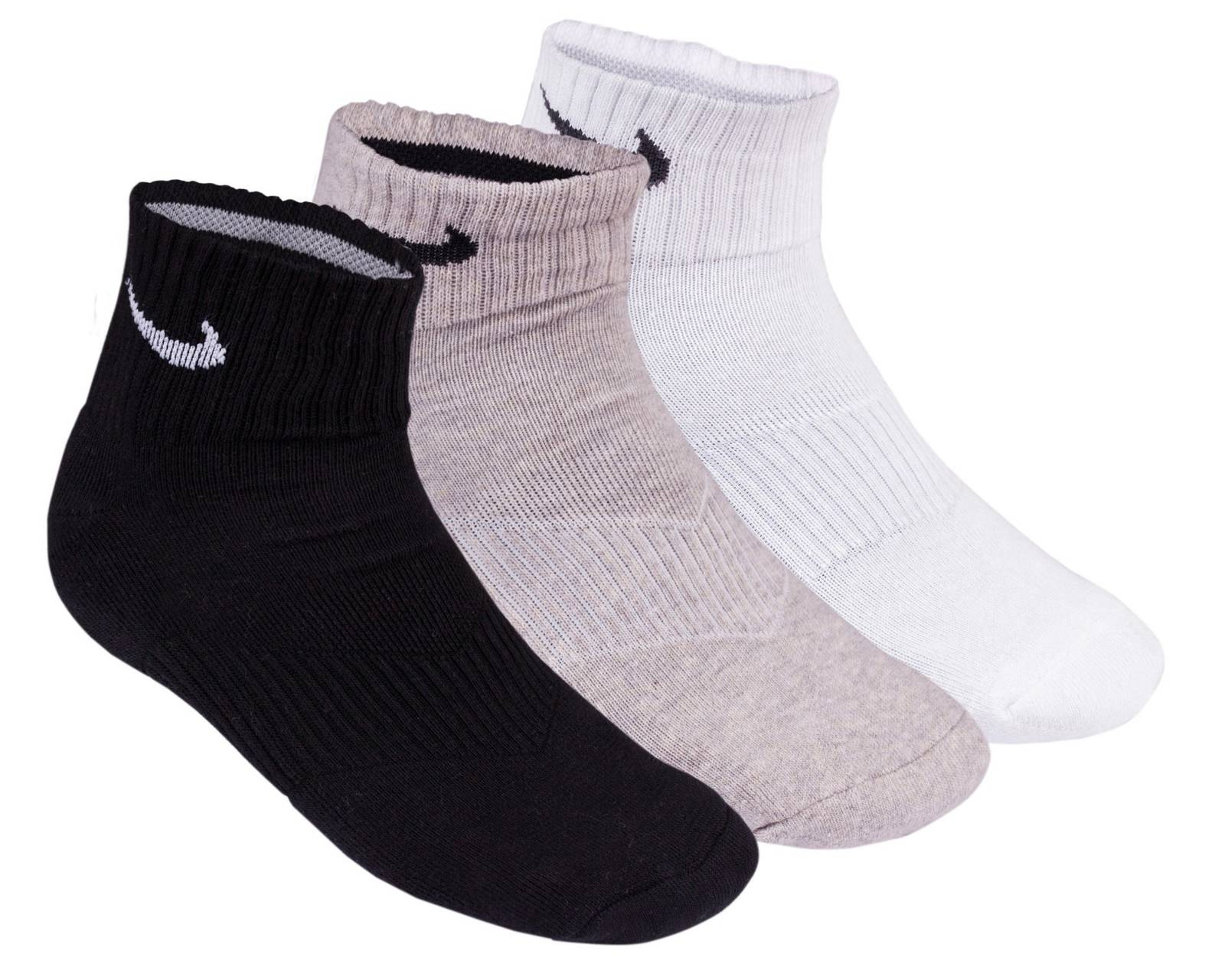 Męskie skarpety firmy Nike dostępne w kolorze czarnym, beżowym i białym zostały wykonane z połączenia trzech materiałów: oddychającej bawełny (69%), wytrzymałego nylonu (29%) i elastycznego spandexu (2%). Są wygodne, dzięki obecności bawełny w składzie znacząco redukują ilość potu wydzielanego podczas użytkowania, nie gniotą się dzięki właściwościom nylonu i idealnie dopasowują przez domieszkę spandexu. Przydadzą się zarówno podczas treningów jak i na co dzień. Logo producenta zostało umiejscowione na górze modelu. Cena jest niska względem jakości wykonania. Produkty są nowe i posiadają oryginalne metki.