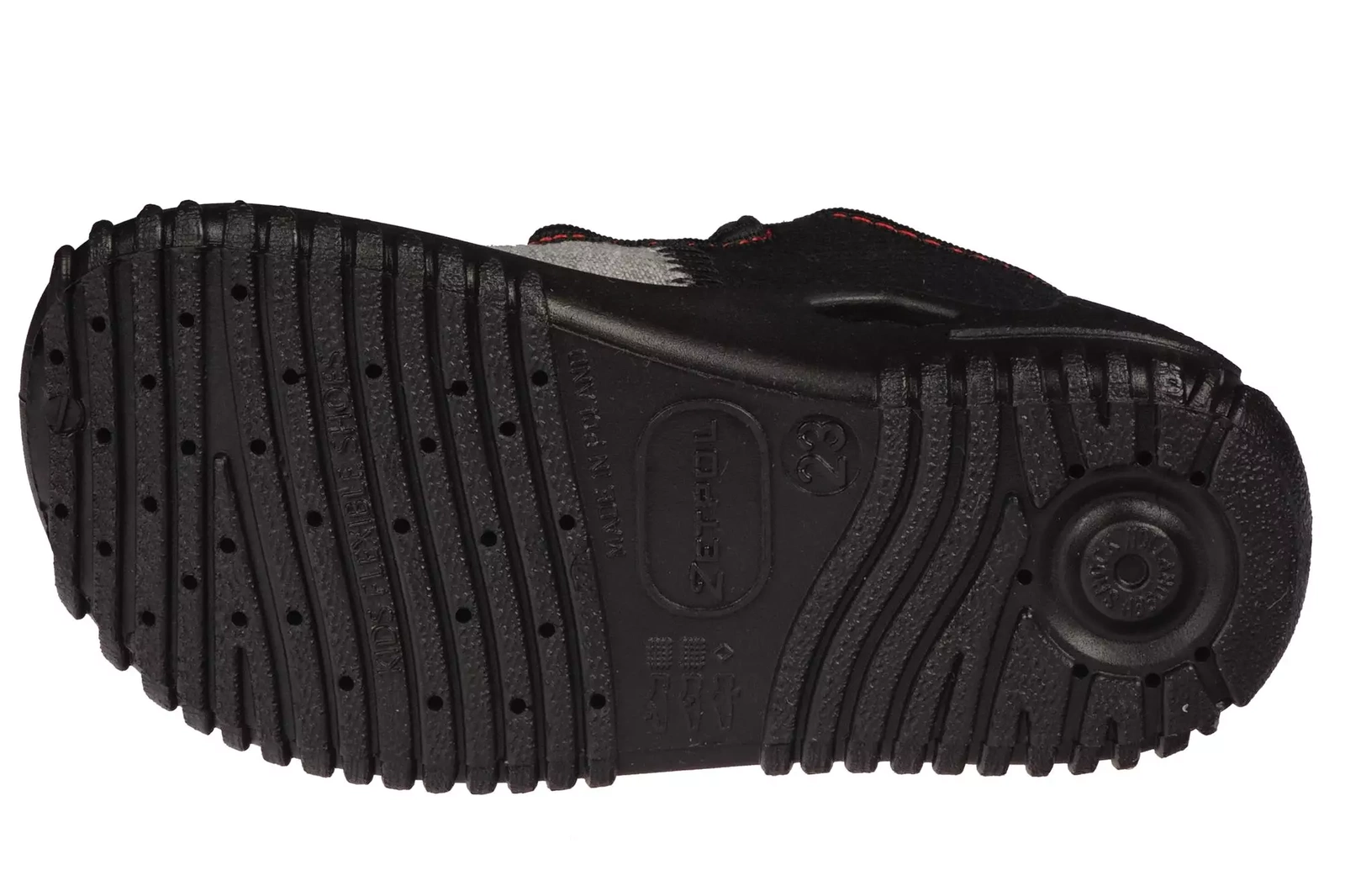- Czarne obuwie chłopięce posiadaja skórzaną wkładkę, która jest wzbogacona o aktywny węgiel oraz dziurki poprawiające wentylację i zapobiegające nadmiernemu poceniu się stopy. Buciki do przedszkola są zapinane na sprzączkę.