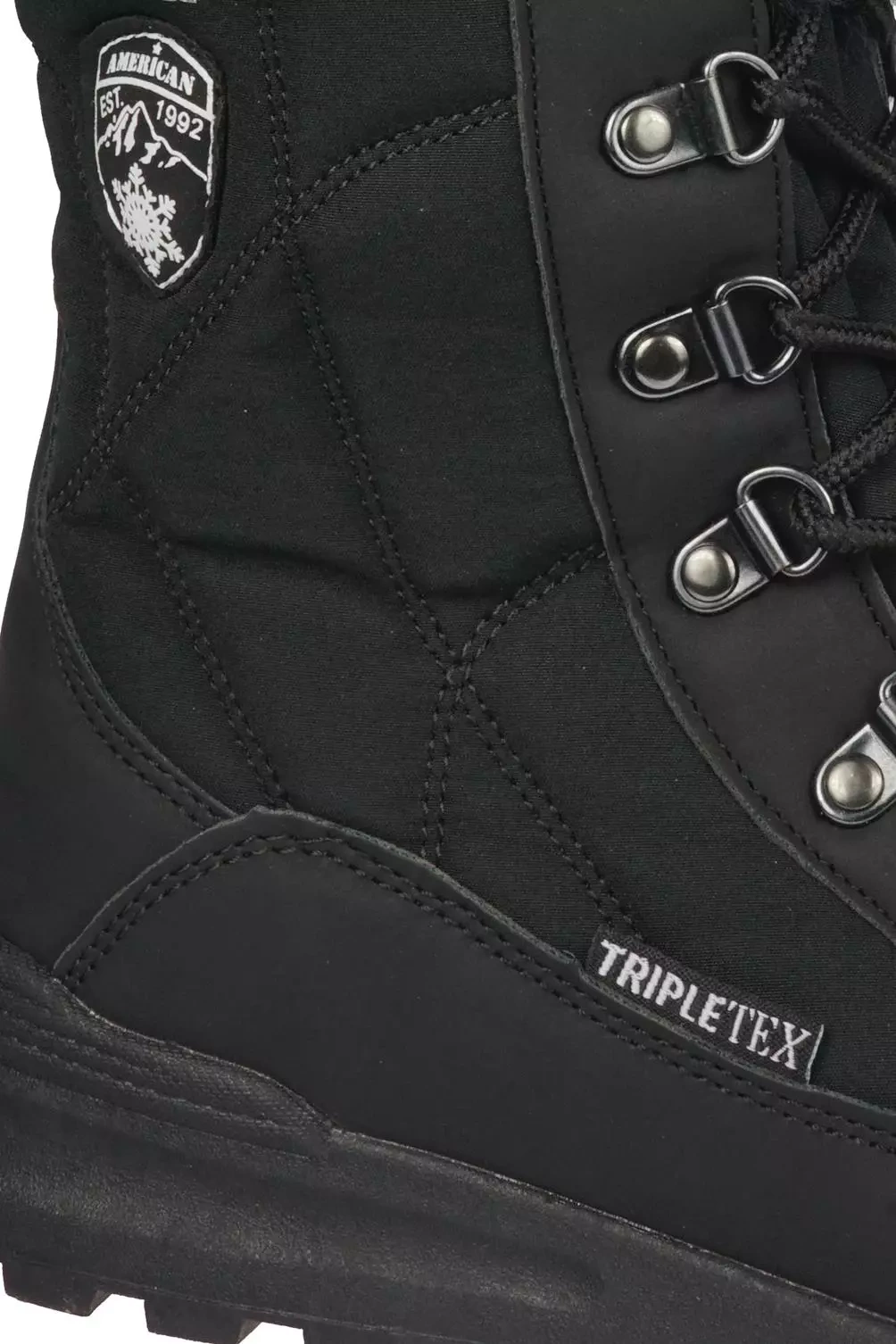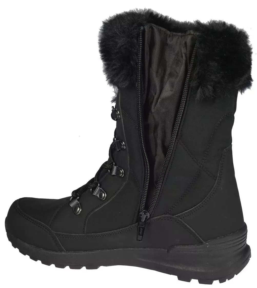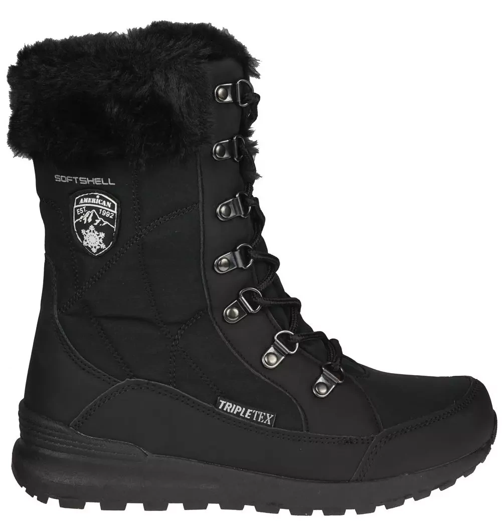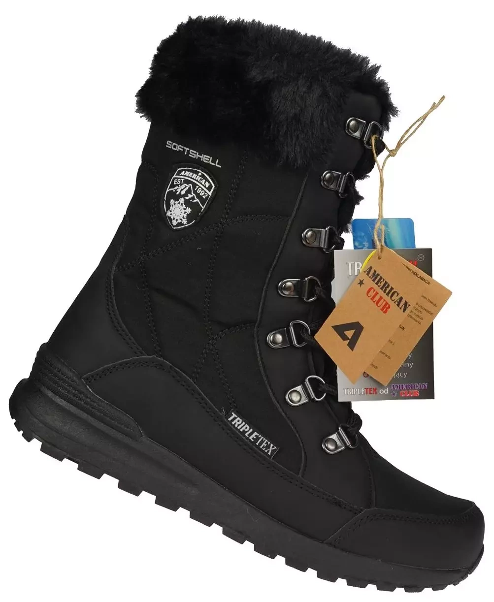 - Zimowe buty damskie Firmy American Club w kolorze czarnym. Wysokie obuwie posiada cholewkę Softshell oraz wodoodporną membranę Tripletex. Czarne damskie obuwie zimowe jest idealne na jesienne oraz zimowe dni.
