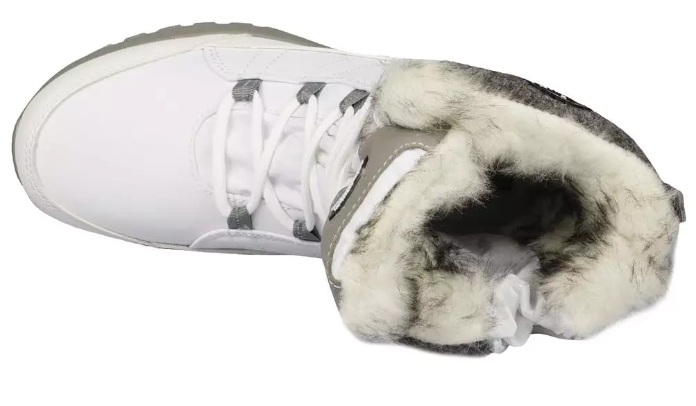 Zimowe buty damskie Firmy American Club w kolorze białym z ciepłym kożuchem. Obuwie za kostkę jest solidne, wygodne i ładnie się prezentuje. Buty zostały wykonane z materiałów wysokiej jakości, posiadają cholewkę Softshell, która chroni przed niską temperaturą, wiatrem, deszczem oraz śniegiem. Dodatkowo, wodoodporna membrana Tripletex posiada zaawansowane właściwości odprowadzania wilgoci. Wysokie buty damskie softshell posiadają grubą podeszwę z bieżnikiem, która dba o dobrą przyczepność do podłoża oraz zapobiega przed ślizganiem. Wnętrze obuwia zimowego jest ocieplane miękkim kożuchem co zapewni odpowiednią temperaturę nawet podczas zimowych dni. Zamek usprawnia proces zakładani i ściągania a wiązanie pozwala na idealne dopasowanie. Białe buty zimowe pięknie prezentuje się na nodze i urozmaicą każdą stylizację, a ciepły kożuch nie tylko zapewnia ciepło ale również jest elementem ozdobnym. Ponadto szare wstawki, przeszycia i odblaskowe elementy są detalami, które podkreślają wysoką jakość wykonania produktów American oraz tworzą spójną całość. Ocieplane obuwie damskie sprawdzi się w jesienne oraz zimowe dni do codziennego użytku czy też w górskie wyprawy.
