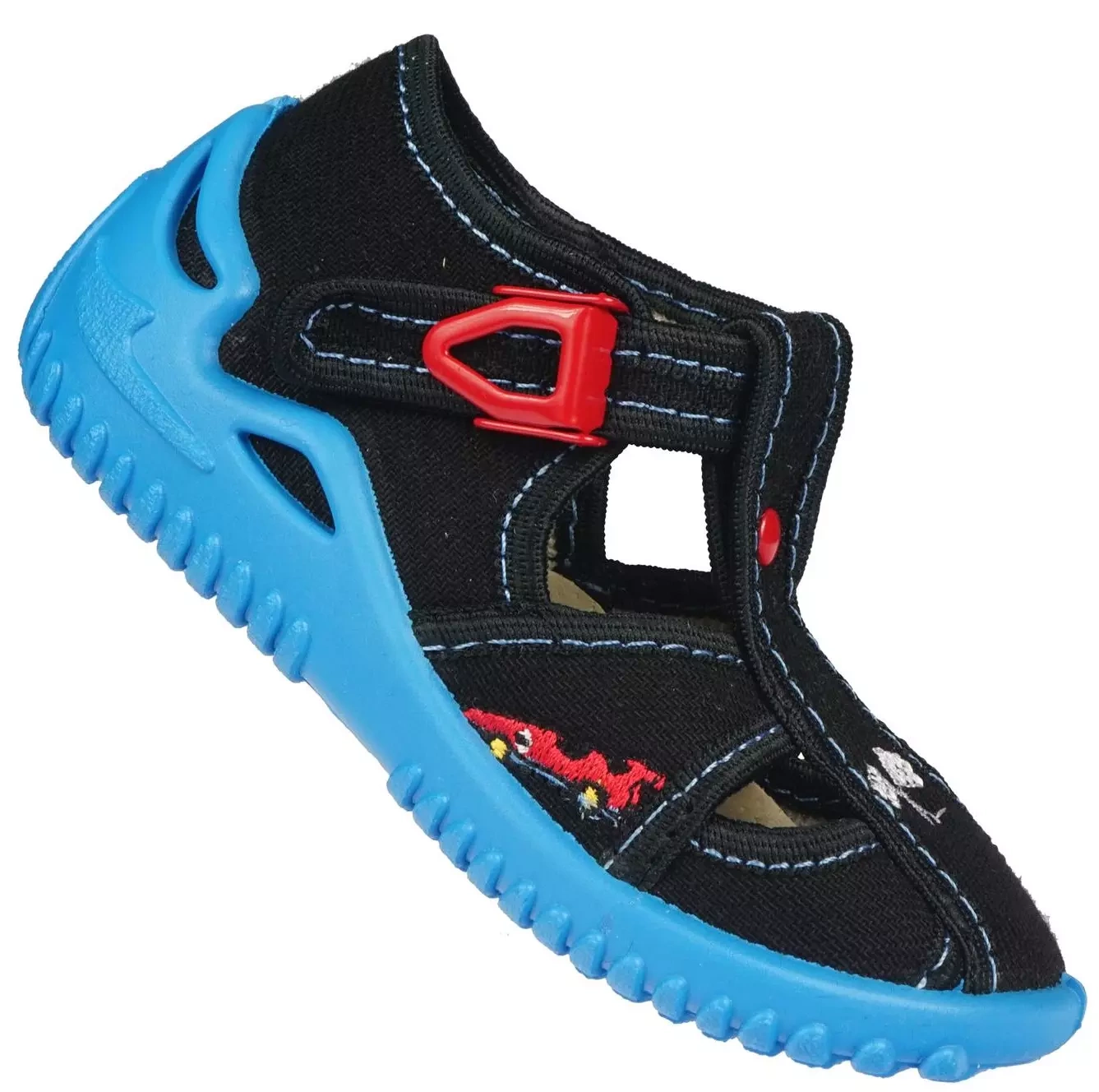 - Czarne obuwie chłopięce posiadaja skórzaną wkładkę, która jest wzbogacona o aktywny węgiel oraz dziurki poprawiające wentylację i zapobiegające nadmiernemu poceniu się stopy. Buciki do przedszkola są zapinane na sprzączkę.