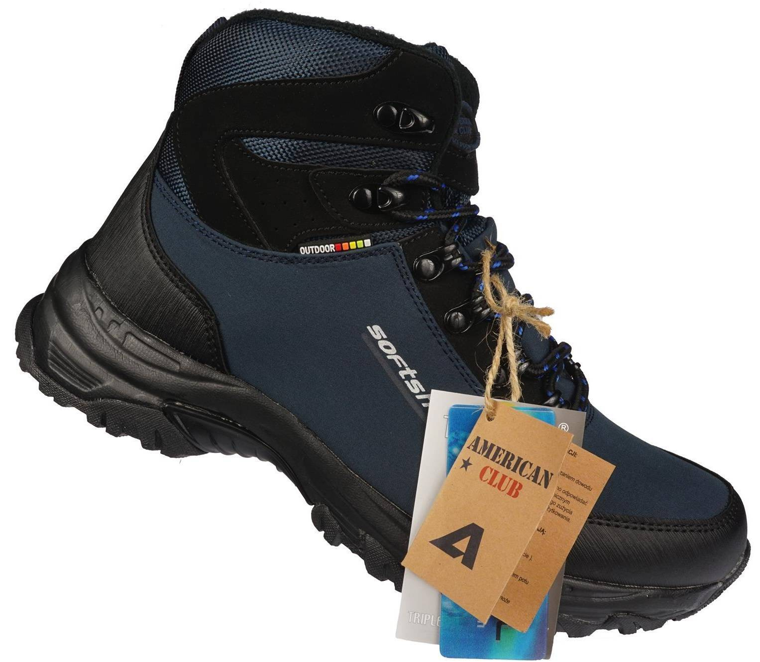 - Męskie buty na zimę Firmy American Club w kolorze granatowym. Buty za kostkę posiadają cholewkę Softshell i wodoodporną membranę Tripletex co zabezpiecza przed niską temperaturą, wiatrem, deszczem oraz śniegiem.