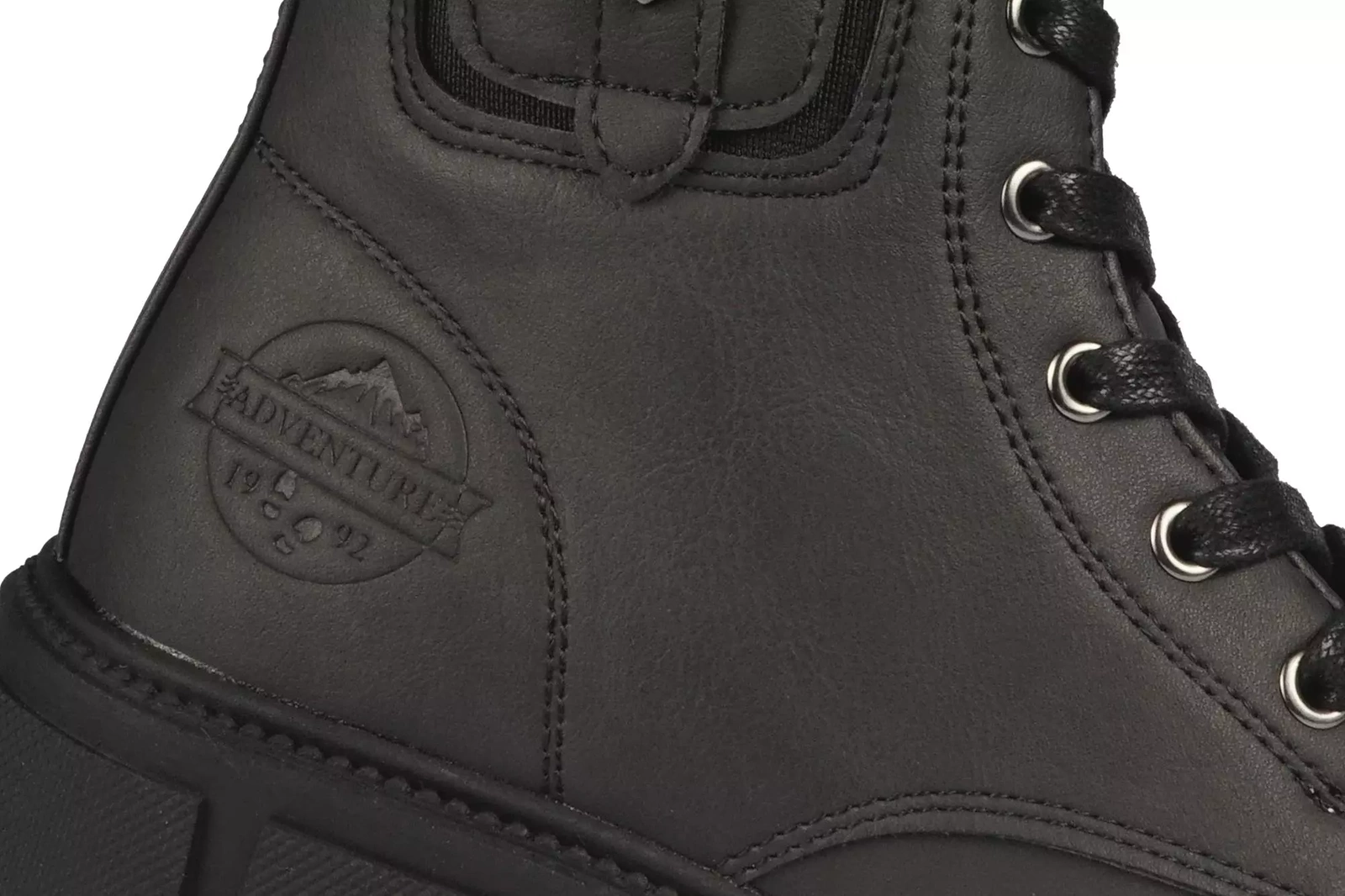 Zimowe trzewiki dziecięce Firmy American Club w kolorze czarnym. Wysokie buty są wygodne i ładnie prezentują się na nodze. Wykonane na podobieństwo glanów z grubą, masywną podeszwą, która dodaje charakteru prostej konstrukcji. Zimowe buty dziewczęce zostały wykonane z wysokiej jakości materiałów, posiadają cholewkę ze skóry ekologicznej, która zapewnia ochronę przed niską temperaturą oraz ułatwia czyszczenie. Gruba podeszwa z bieżnikiem zapewnia dobrą przyczepność do podłoża oraz wygodę użytkowania. Wnętrze buta jest ocieplane kożuchem co zapewni odpowiednią temperaturę nawet podczas zimowych dni. Ocieplane buty są wiązane, ale dodatkowym plusem jest suwak u boku który przyspiesza zakładanie i sprawia, że obuwie dziewczęce idealnie dopasowuje się do stopy. Przez swoją klasyczną czarną kolorystykę i prosty design oraz solidne wykonanie są to idealne zimowe ocieplane buty dla dziecka. Sprawdzą się do codziennego użytku, jak również pasują do bardziej eleganckich stylizacji.