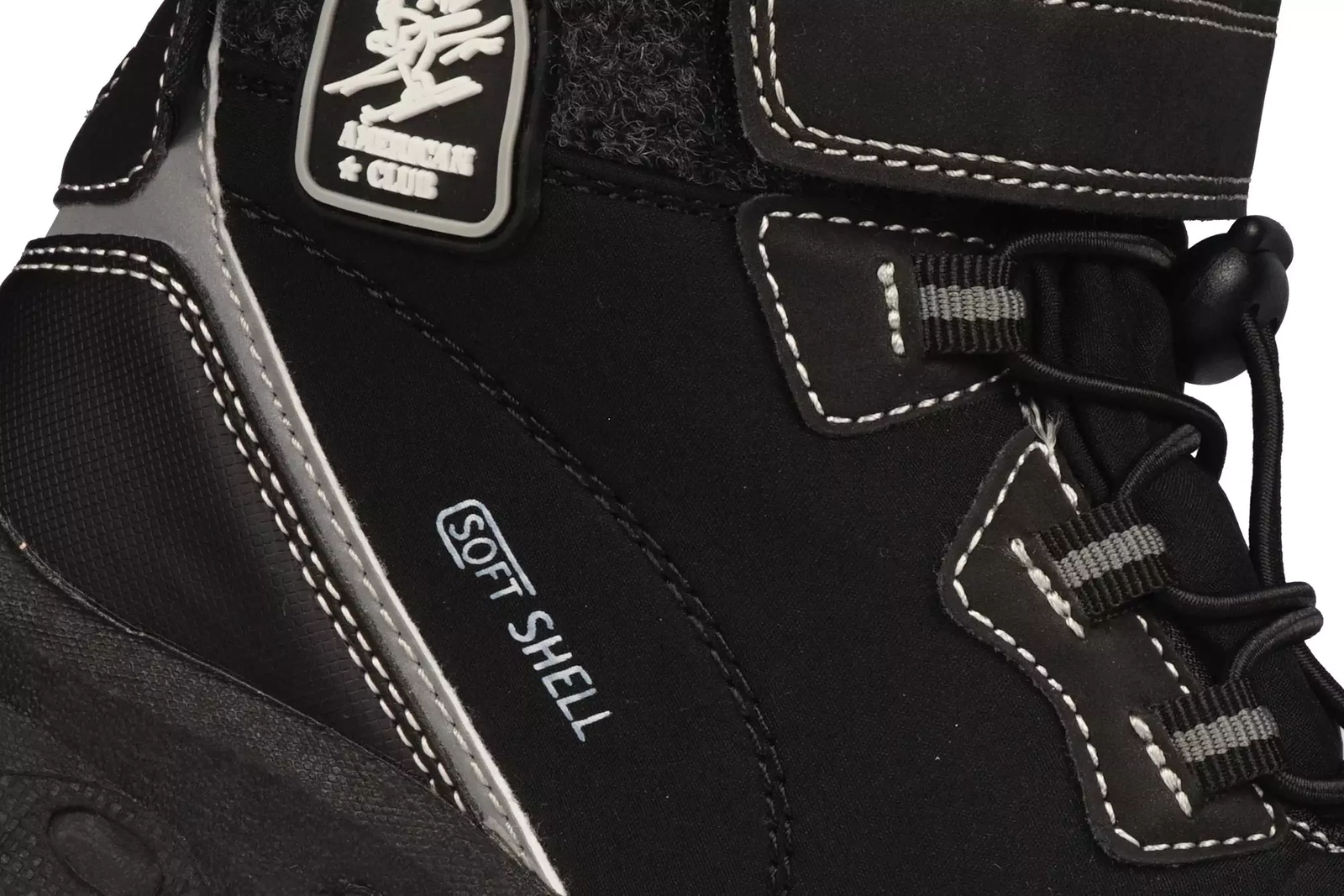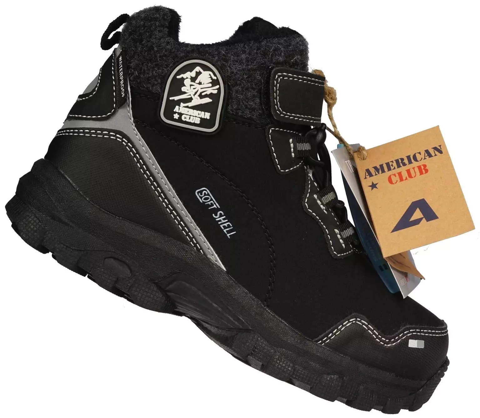 • Zimowe buty dziecięce Firmy American Club w kolorze czarnym. Wykonane z wysokiej jakości materiału typu softshell w ciekawym designie. Wnętrze buta jest ocieplane co zapewni odpowiednią temperaturę nawet podczas zimowych dni.