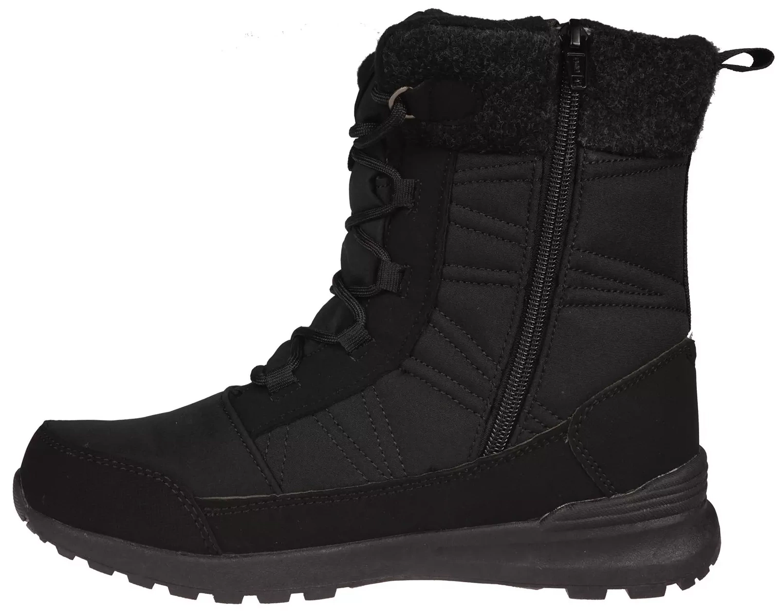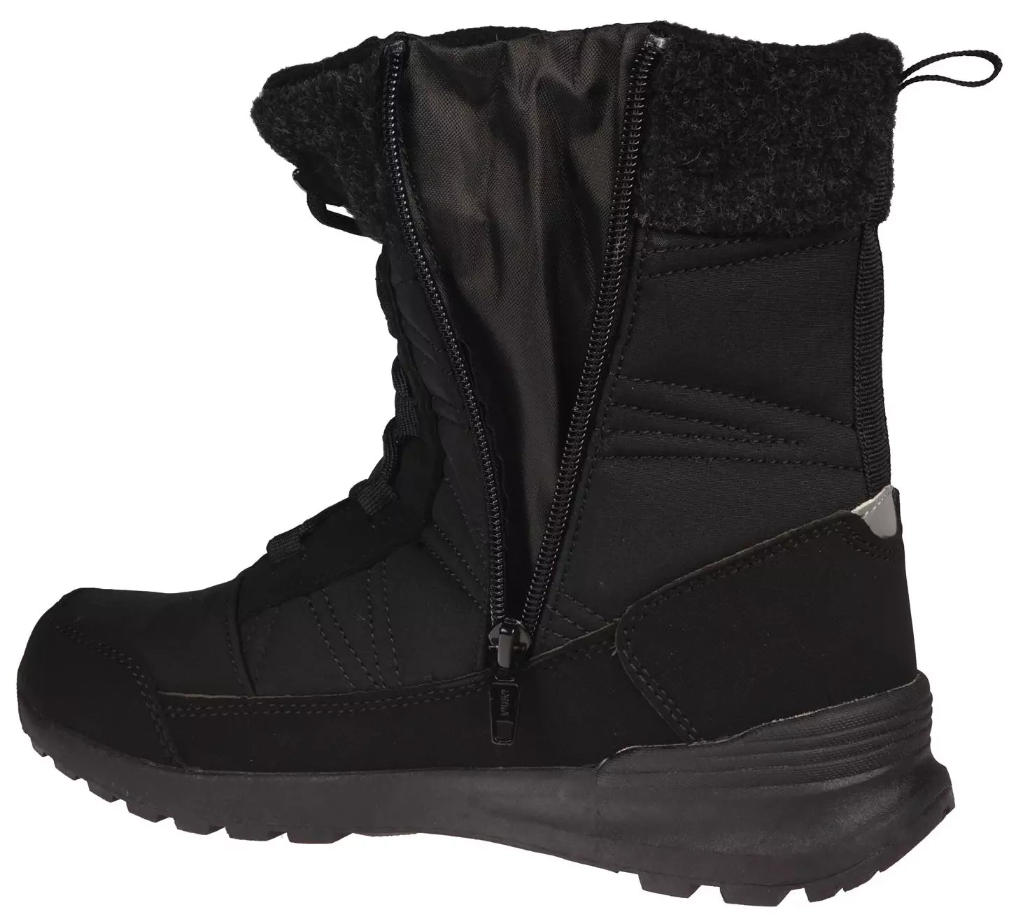 Zimowe buty damskie Firmy American Club w kolorze czarnym. Obuwie solidne, wygodne i ładnie się prezentuje. Buty zostały wykonane z wysokiej jakości materiałów, posiadają cholewkę Softshell która chroni przed niską temperaturą, wiatrem, deszczem oraz śniegiem. Dodatkowo posiadają wodoodporną membranę Tripletex. Gruba podeszwa z bieżnikiem zapewnia dobrą przyczepność do podłoża oraz wygodę użytkowania. Wnętrze buta jest ocieplane co zapewni odpowiednią temperaturę nawet podczas zimowych dni. Dodatkowymi plusami są wiązanie oraz zamek na boku które sprawiają, że buty idealnie dopasowują się do stopy oraz ułatwiają i przyspieszają ich zakładanie. Podsumowując, wysokie buty na suwak w idealny sposób sprawdzą się w jesienne oraz zimowe dni do codziennego użytku czy też w górskie wyprawy.