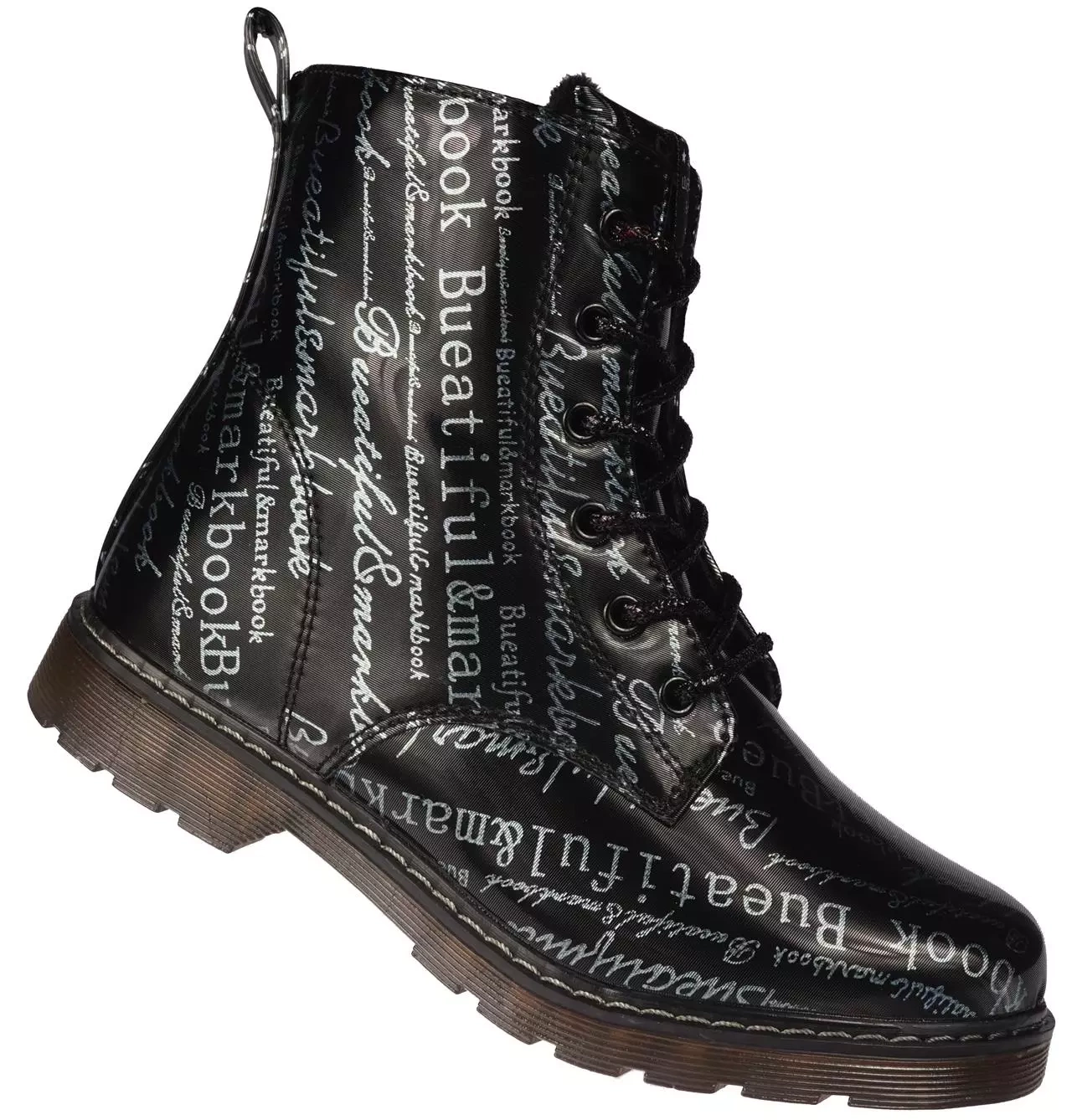 Wysokie buty przejściowe dla dziecka American Club w czarnym kolorze ze srebrnymi napisami, które urozmaicają klasyczną kolorystykę. Buty dziewczęce za kostkę, inspirowane stylem glanów i wykonane z wysokiej jakości tworzywa, stanowią doskonały wybór na mroźne dni. Wnętrze butów otulone futerkiem skutecznie chroni przed zimnem, a gumowa, antypoślizgowa podeszwa zapewnia bezpieczeństwo podczas każdej zabawy. Zastosowany zamek ułatwia zarówno zakładanie, jak i zdejmowanie obuwia zimowego, a dodatkowe sznurówki nie tylko umożliwiają jeszcze lepsze dopasowanie do stopy, ale również pełnią funkcję ozdobną. Te ocieplane buty dziecięce świetnie sprawdzą się nie tylko jako codzienne obuwie, ale także będą odpowiednie na wyjątkowe okazje.