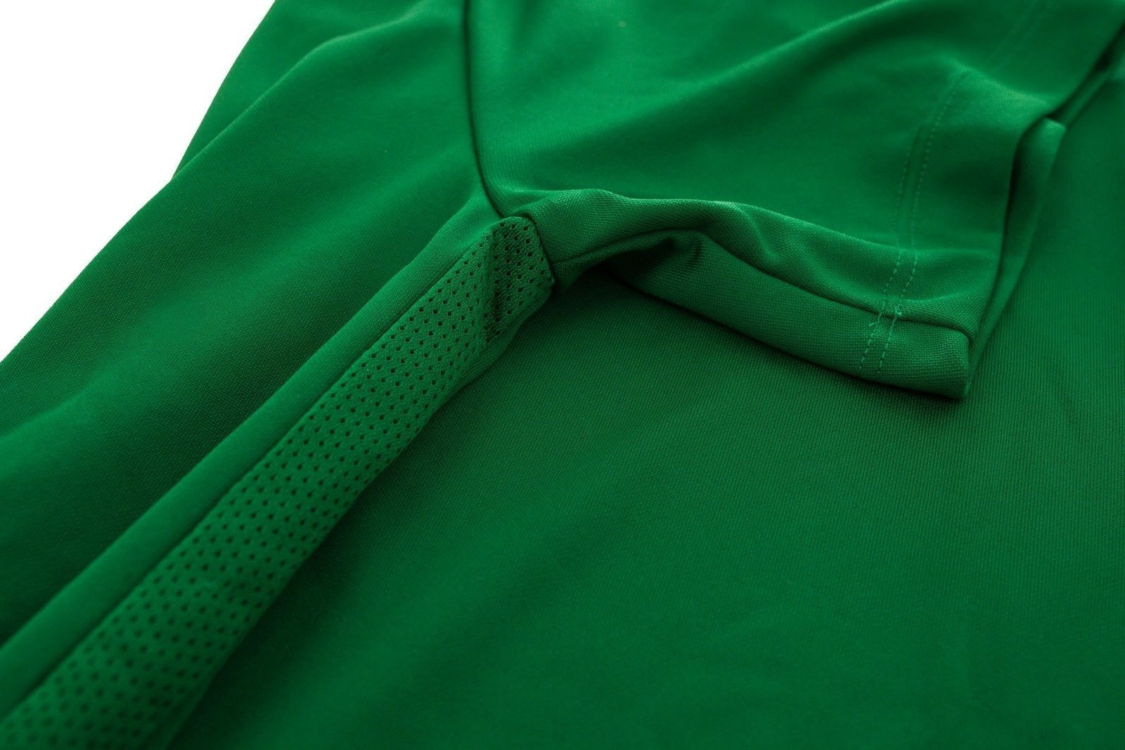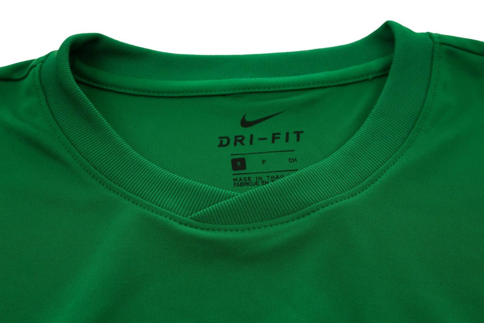 Męska koszulka firmy Nike z kolekcji Park VII dedykowana jest dla osób lubiących aktywnie spędzać czas i ceniących sobie wygodę, styl i praktyczność noszonych ubrań. Wykonana została w 100% z najwyższej jakości poliestru skonstruowanego zgodnie z technologią DRI-FIT, która pomaga odprowadzać pot z powierzchni skóry na zewnątrz materiału, utrzymując dłuższy komfort użytkowania i zapewniając ciału lepsze warunki do ćwiczeń. Doskonale nadaje się więc na treningi siłowe i sportowe, do biegania, jazdy na rowerze i mnóstwa innych aktywności fizycznych będąc przy tym świetną propozycją jako element codziennej stylizacji. Model w kolorze zielonym posiada wyhaftowane na prawej piersi białe logo firmy Swoosh. Krój koszulki sprawia, że dopasowuje się ona do każdego typu sylwetki, jednocześnie zapewniając maksimum swobody ruchu i przewiewność. Produkt jest nowy i posiada oryginalne metki.