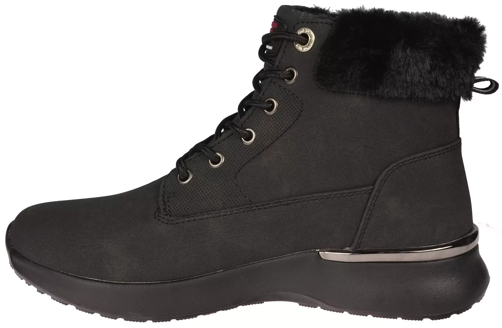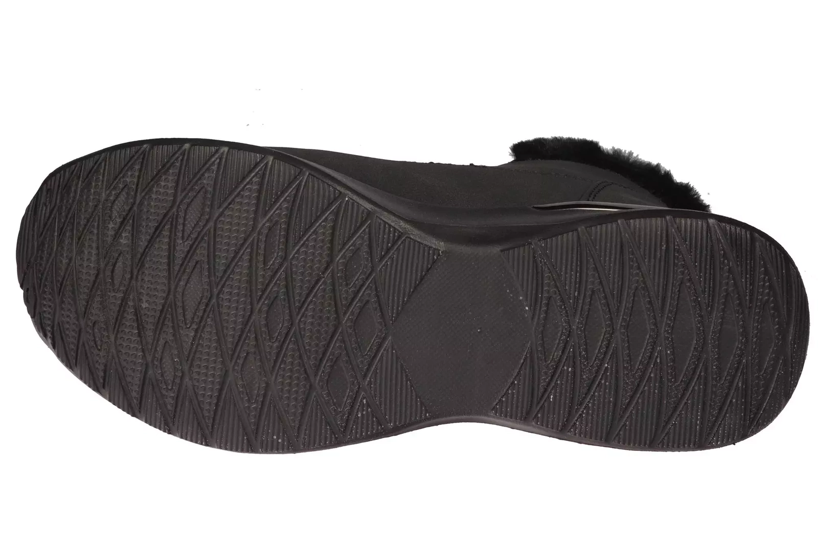 Zimowe buty damskie American Club w kolorze czarnym. Wysoka jakość wykonania i dbałość o szczegół to wizytówka firmy American Club. Obuwie z ekoskóry o wykończeniu typu nubuk charakteryzuje się piękną i delikatną strukturą oraz jest przyjemne i miłe w dotyku. Miękki polar wewnątrz nie tylko zapewnia ciepło, ale również urozmaica klasyczną kolorystykę. Dzięki temu zimowe obuwie za kostkę chroni przed zimnem i niekorzystnymi warunkami atmosferycznymi. Dużą zaletą zimowych butów jest piankowa podeszwa, która jest lekka i komfortowa, a gumowe wykończenie zapobiega ślizganiu się obuwia na różnych powierzchniach. Co więcej, trapery damskie są wiązane na sznurówki przez co można, według własnych preferencji, dopasować je do stopy. Idealne buty na zimę i jesień - klasyczna konstrukcja i kolorystyka w połączeniu z wysoką jakością sprawia, że obuwie będzie pasować do wielu stylizacji i sytuacji.