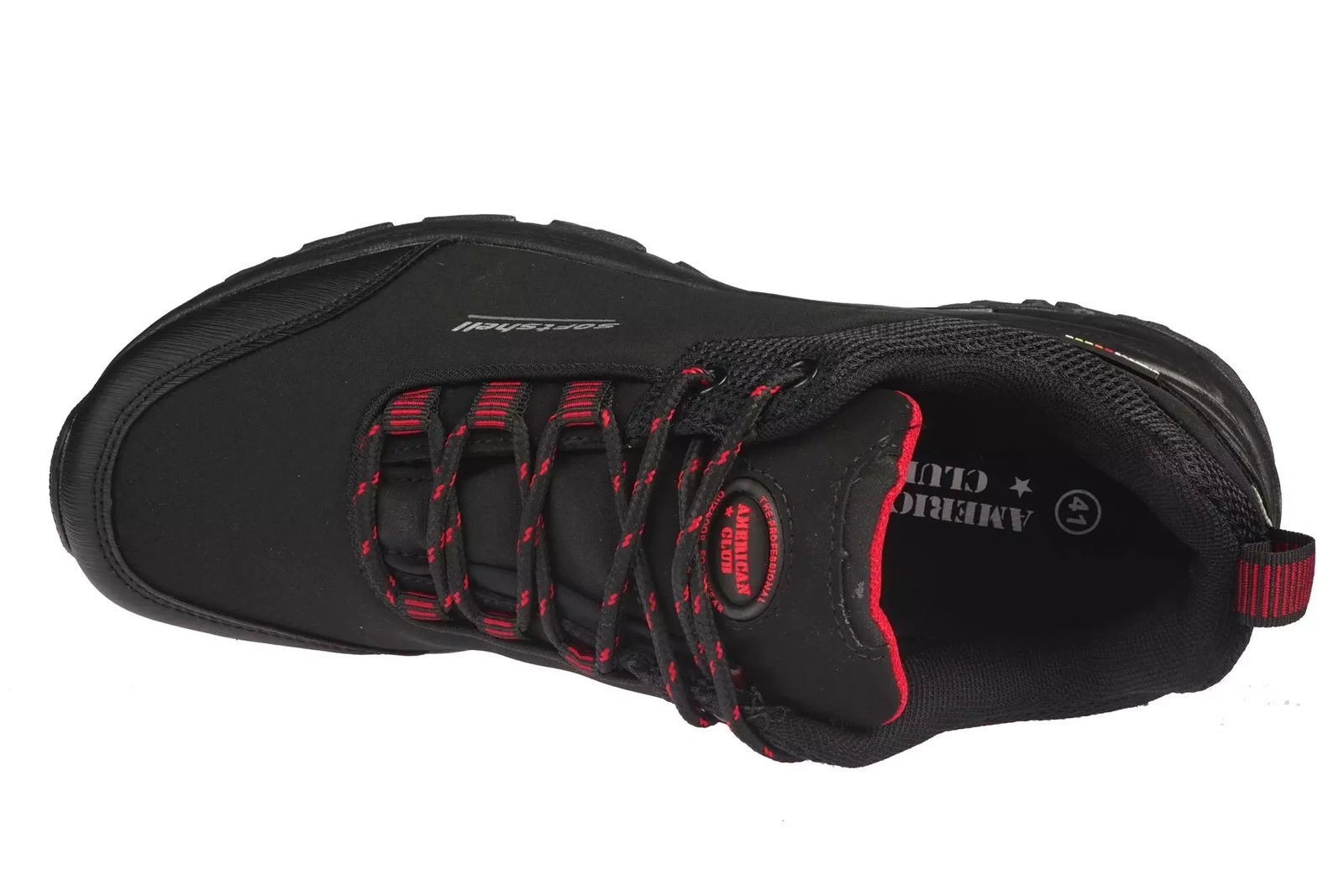 Trekkingowe buty męskie Firmy American Club w kolorze czarnym z czerwonymi wstawkami. Obuwie solidne, wygodne i ładnie się prezentuje. Buty zostały wykonane z wysokiej jakości materiałów. Posiadają cholewkę Softshell która chroni przed niską temperaturą, wiatrem, deszczem. Dzięki zaawansowanej, nowoczesnej metodzie wilgoć odprowadzana jest na zewnątrz obuwia, jednocześnie nie pozwalając przenikać jej do środka. Solidna piankowa podeszwa z gumowym bieżnikiem zapewnia dobrą przyczepność do podłoża oraz wygodę użytkowania. Obuwie jest wiązane dzięki czemu doskonale dopasowuje się do stopy. Podsumowując, buty w idealny sposób sprawdzą się w każdej pogodzie, w ciepłe lub zimne dni, do codziennego użytku czy też w górskie wyprawy, są lekkie wytrzymałe i mega wygodne. Buty firmy American Club w tym przedziale cenowym są najlepszym możliwym wyborem.