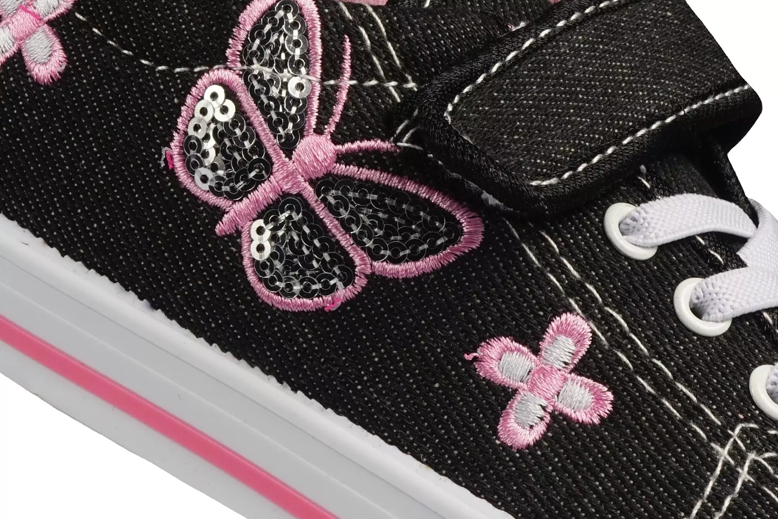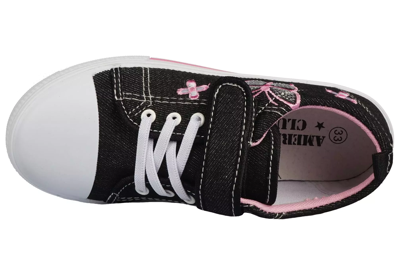 Tenisówki dziecięce w kolorze czarnym, których producentem jest firma American Club. Zostały wykonane z materiałów tekstylnych o bardzo wysokiej jakości, model jest solidny, schludnie wykonany i dobrze leży na nodze. Buty posiadają grubą, gumową podeszwę co zapewnia im trwałość i bardzo dobrą przyczepność do podłoża. Ich klasyczna budowa urozmaicona została ciekawymi przeszyciami, które przyciągają uwagę oraz w klasycznej kolorystyce. Zapięcie na rzep ułatwia i znacznie przyspiesza zakładanie obuwia przez dzieci. Wnętrze jest bardzo delikatne i przyjazne dla skóry dzięki czemu noga się nie męczy nawet po korzystaniu z nich przez dłuższy czas. Tenisówki te są lekkie i wygodne posiadają miękką wkładkę oraz usztywnioną piętę co znacznie poprawia komfort ich użytkowania. Obuwie nada się idealnie do szkoły czy używania na co dzień.