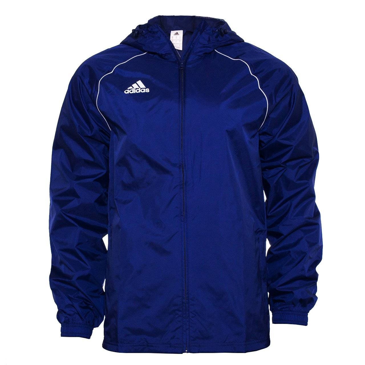 Męska przeciwdeszczowa kurtka marki Adidas w kolorze granatowym. Model posiada długie rękawy ze ściągaczem oraz kaptur, również ze ściągaczem. Kurtkę zdobią białe, delikatne paski oraz biały logotyp. Kurtka wykonana jest w 100% nylonu, z kolei podszewka to 100% poliester. Kurtka pochodzi z serii CORE 18. Kurtka jest przeciwdeszczowa i doskonale nadaje się na trening na zewnątrz. Jest przewiewna i lekka, ale doskonale chroni również przed wiatrem i chłodem. Model kurtki został bardzo dobrze przemyślany, dzięki czemu kurtka jest nie tylko funkcjonalna, ale także wygodna, a to niezwykle ważne. Granatowy kolor jest bardzo klasyczny, przez co będzie pasować do wielu stylizacji (również tych sportowych!), ale i energetyczny, dzięki czemu bez względu na panujące trendy czy modę, stylizacja będzie zwracać uwagę. Do kurtki z łatwością można dobrać lekką bluzkę czy spodnie dresowe lub materiałowe. Fani codziennych stylizacji mogą dopasować klasyczne dżinsy i T-shirt. Dzięki temu, że kurtka jest uniwersalna, będzie pasować zarówno na co dzień jak i na treningi zewnętrze lub weekendowe wyjazdy w góry.