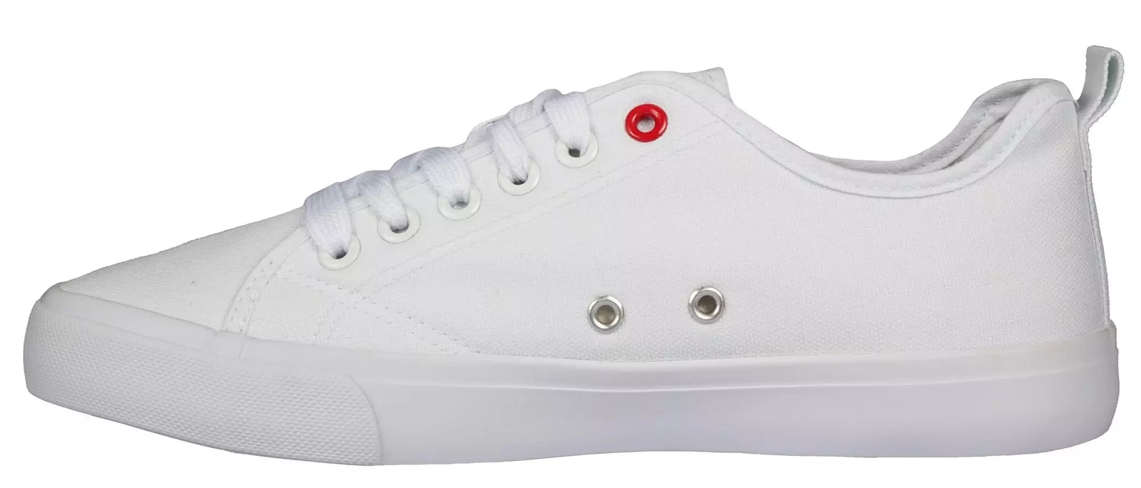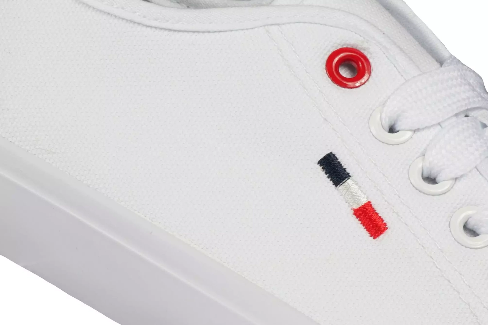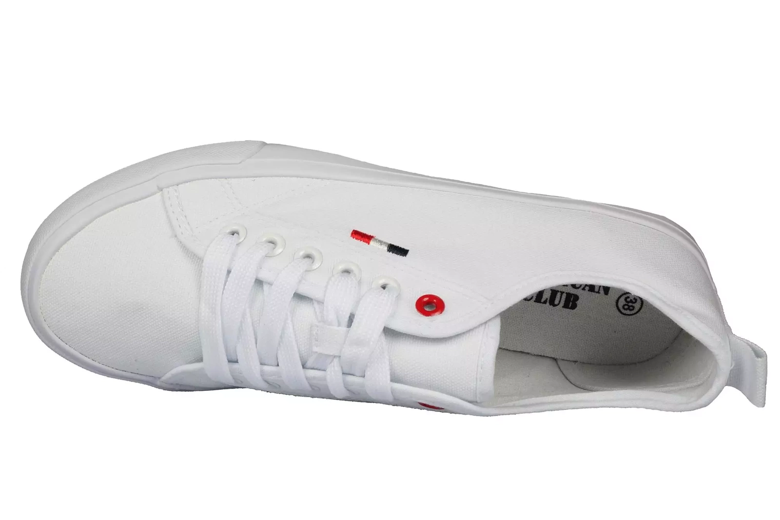 - Tenisówki firmy American Club w kolorze białym. Wykonane zostały bardzo solidnie i starannie z materiałów tekstylnych o wysokiej jakości. Podeszwa jest płaska i gumowa dzięki czemu zapewnia dobrą przyczepność do podłoża, obuwie jest wiązane.