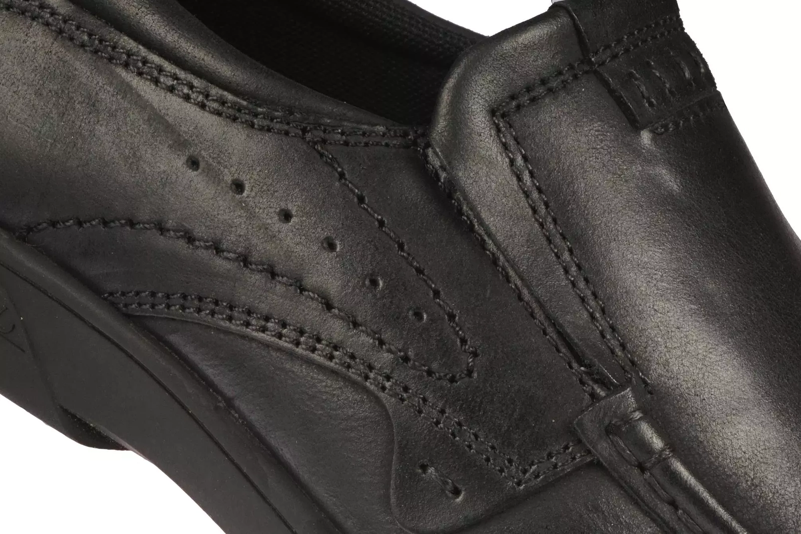 - Czarne męskie półbuty American Club wykonane ze skóry naturalnej, zapewniają niezrównany komfort i elegancję. Wsuwane półbuty szybko się zakładają, a dzięki dziurkowanej konstrukcji zapewniają odpowiednią wentylację.