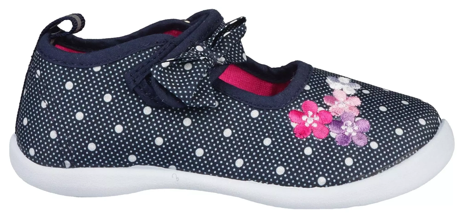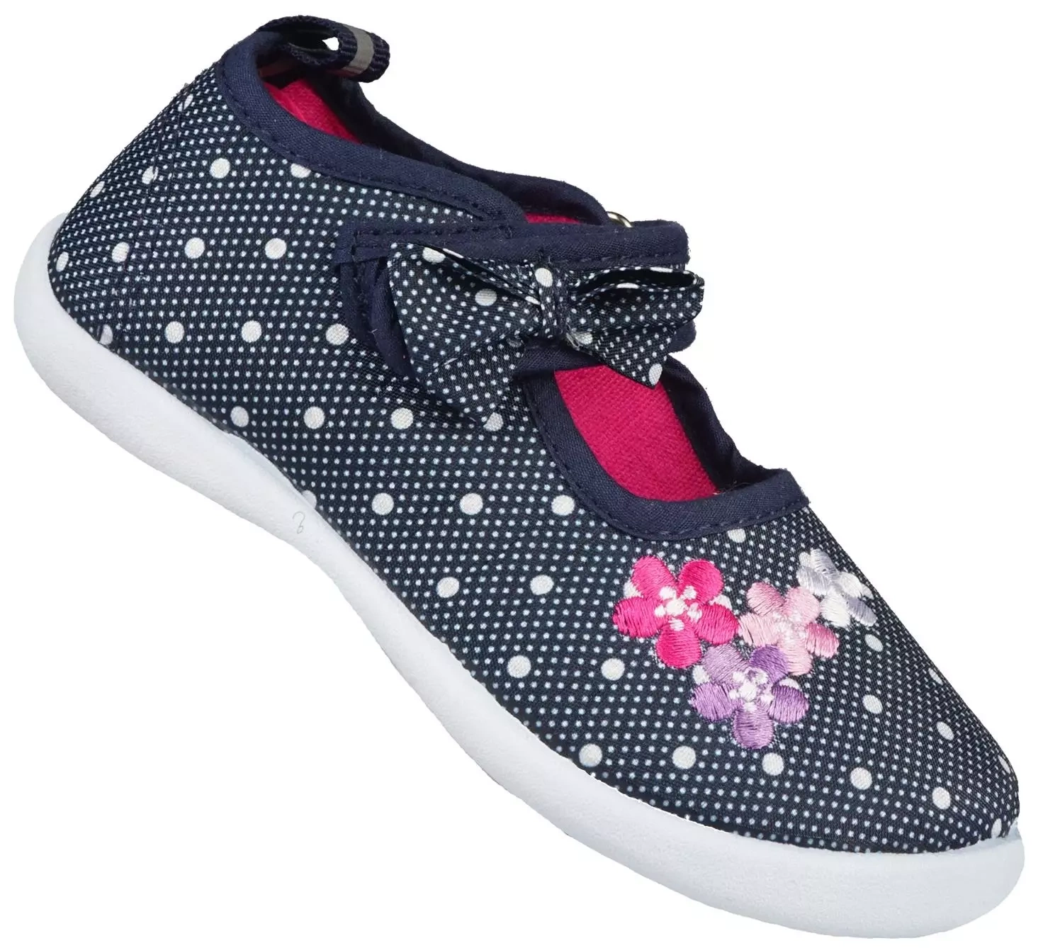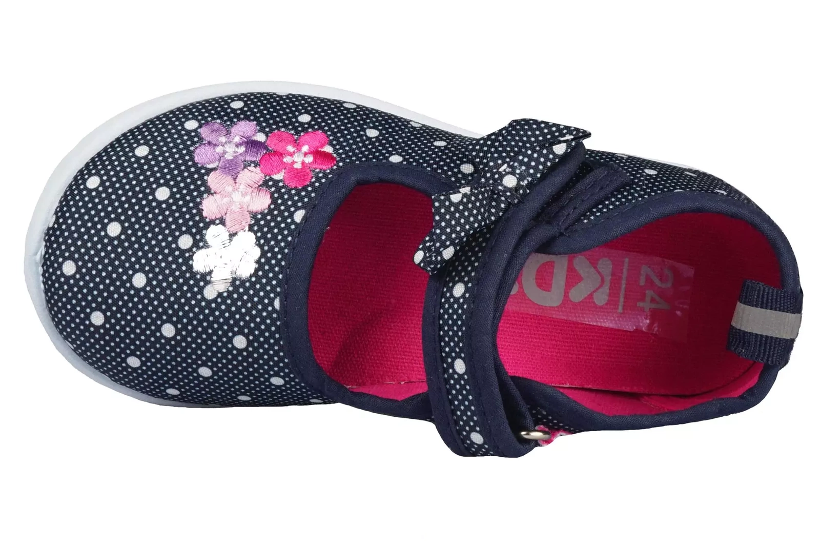 Tenisówki dziecięce firmy Altetico z serii KDX w kolorze granatowym osadzone na białej, gumowej elastycznej podeszwie. Buciki maja grafikę kwiatuszków oraz kokardą na rzepie. Model posiada wzmocnioną piętę. Wykonane zostały z materiałów tekstylnych o wysokiej jakości. Wewnątrz posiadają miękką wkładkę tekstylną, która zapewnia wysoki komfort podczas użytkowania. Model ten posiada rzep, który utrzymuje buty tak aby nie spadały z nogi, rozwiązanie to pozwala również na szybkie zakładanie jak i ściąganie obuwia. Tenisówki KDX to świetny wybór obuwia do szkoły, przedszkola, lub do codziennego użytku.