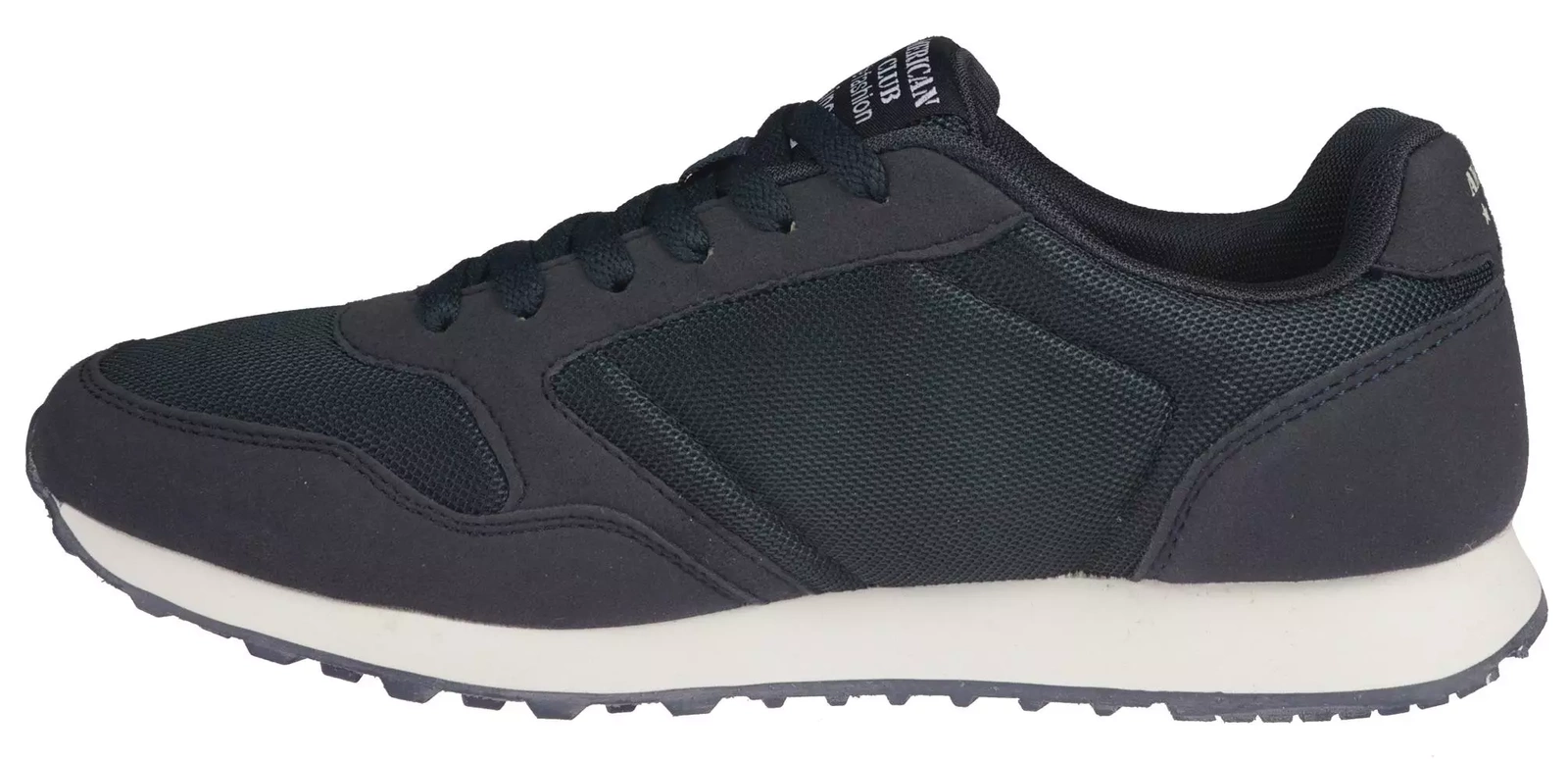 ęskie buty sportowe firmy American Club w kolorze granatowym w klasycznym, prostym designie. Zewnętrzna warstwa buta wykonana jest ze skóry ekologicznej z elementami siatki. Połączenie to gwarantuje wytrzymałość produktu, dobrą wentylacje i estetyczny wygląd. Męskie półbuty posiadają miękką piankową wkładkę - Memory Foam, która dopasowuje się do stopy i podnosi komfort użytkowania. Dodatkowo, piankowa podeszwa została wykończona gumą, co zapobiega ślizganiu i nadaje stabilności. Wiązane obuwie męskie stworzone jest w jednolitej i stonowanej kolorystyce, ale dokładne wykończenie podkreślają jakość produktów American Club. Idealne buty sportowe do codziennego użytku, sprawdzą się na spacerze, w pracy czy na spotkaniu ze znajomymi. Ich wszechstronność sprawia, że są niezastąpionym elementem garderoby dla aktywnych mężczyzn. Dzięki doskonałemu stosunkowi jakości do ceny, te ciemne obuwie American Club stanowią nie tylko wybór praktyczny, ale również ekonomiczny dla każdego, kto ceni sobie wygodę i styl.M