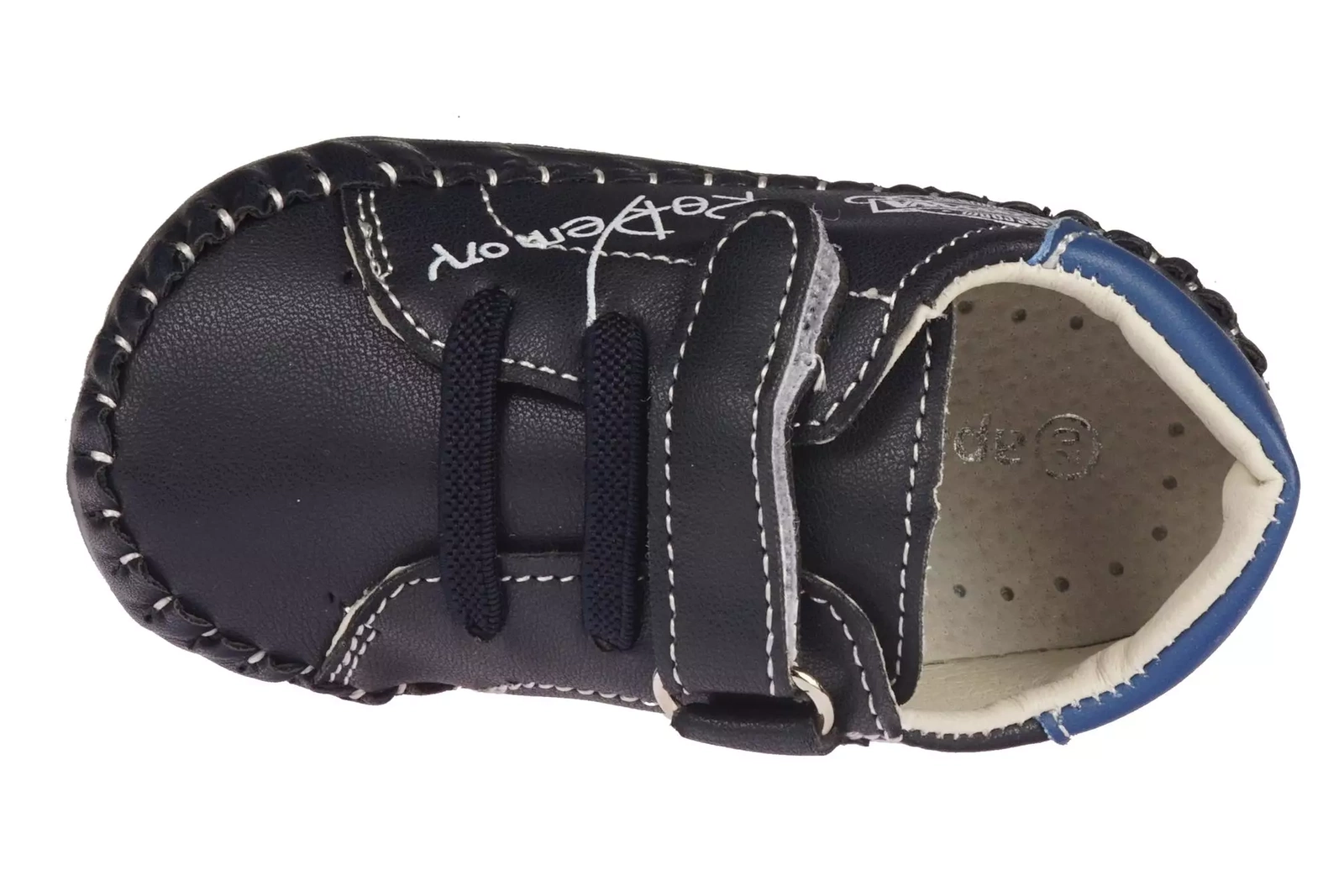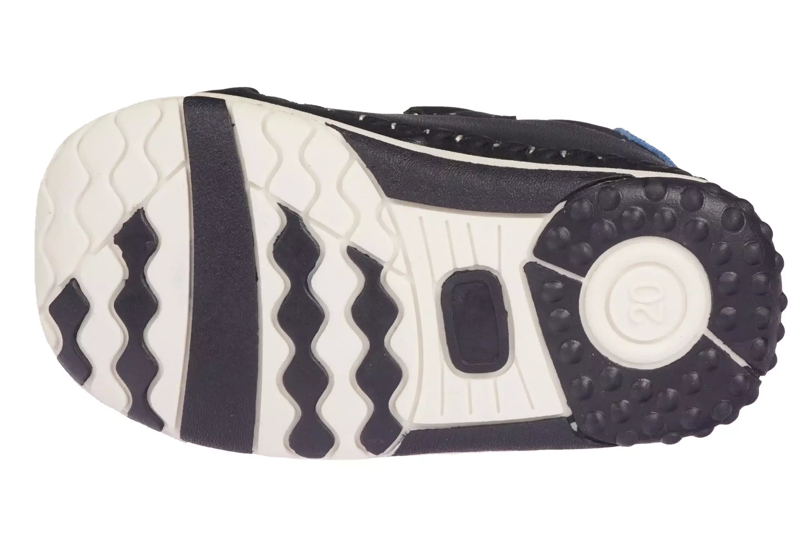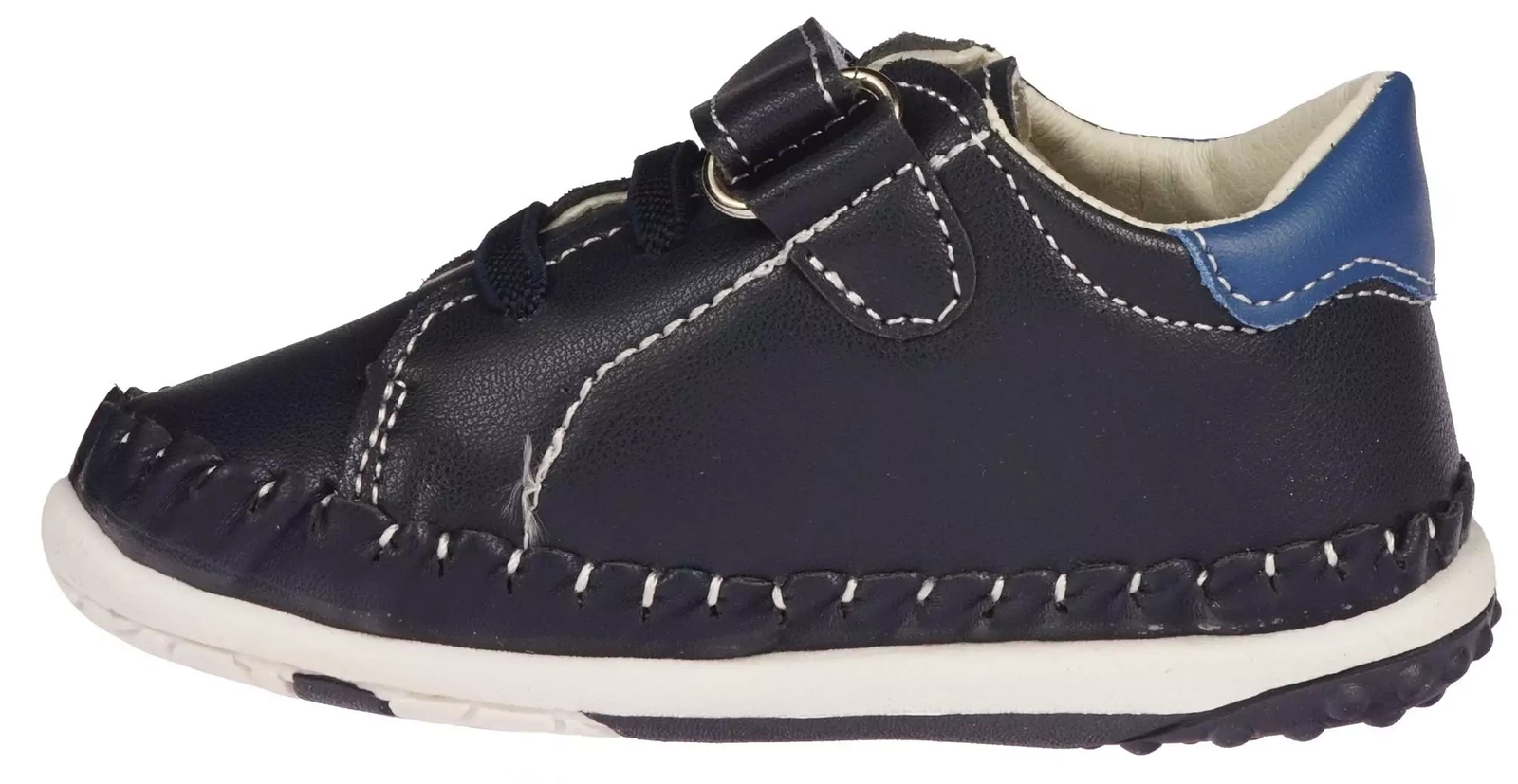 Dziecięce obuwie Apawwa w kolorze granatowym z minimalną grafiką i ciekawymi przeszyciami. Półbuty dla dziecka ze skóry ekologicznej, która jest trwała i odporna na warunki atmosferyczne, co sprawia, że buty są odporne na uszkodzenia oraz łatwe w utrzymaniu czystości. Wkładka ze skóry naturalnej w butach dziecięcych Apawwa zapewnia wyjątkowy komfort noszenia oraz doskonałą wentylację dla stóp dziecka. Ponadto, skóra naturalna jest miękka i dopasowuje się do kształtu stopy, co przyczynia się do zapewnienia optymalnego wsparcia i wygody podczas noszenia użytkowania obuwia. Buciki nie mają usztywnianej pięty, jest ona natomiast lekko usztywniana, dzięki temu dzieci mogą swobodnie poruszać się, jednocześnie mając odpowiednie wsparcie dla swoich stóp. Obuwie zapinane na rzepę ułatwia zakładanie i idealne dopasowanie, a gumowa podeszwa w butach dziecięcych może zapewnić doskonałą przyczepność do różnych rodzajów podłoża, co przekłada się na większe bezpieczeństwo podczas zabawy na zewnątrz. Półbuty Apawwa są stworzone w ciekawym, unikatowym ale nie przesadnym designie. Wszystko to sprawia, że produkt ten jest idealnym wyborem dla dziecka jako obuwie do codziennego użytku.