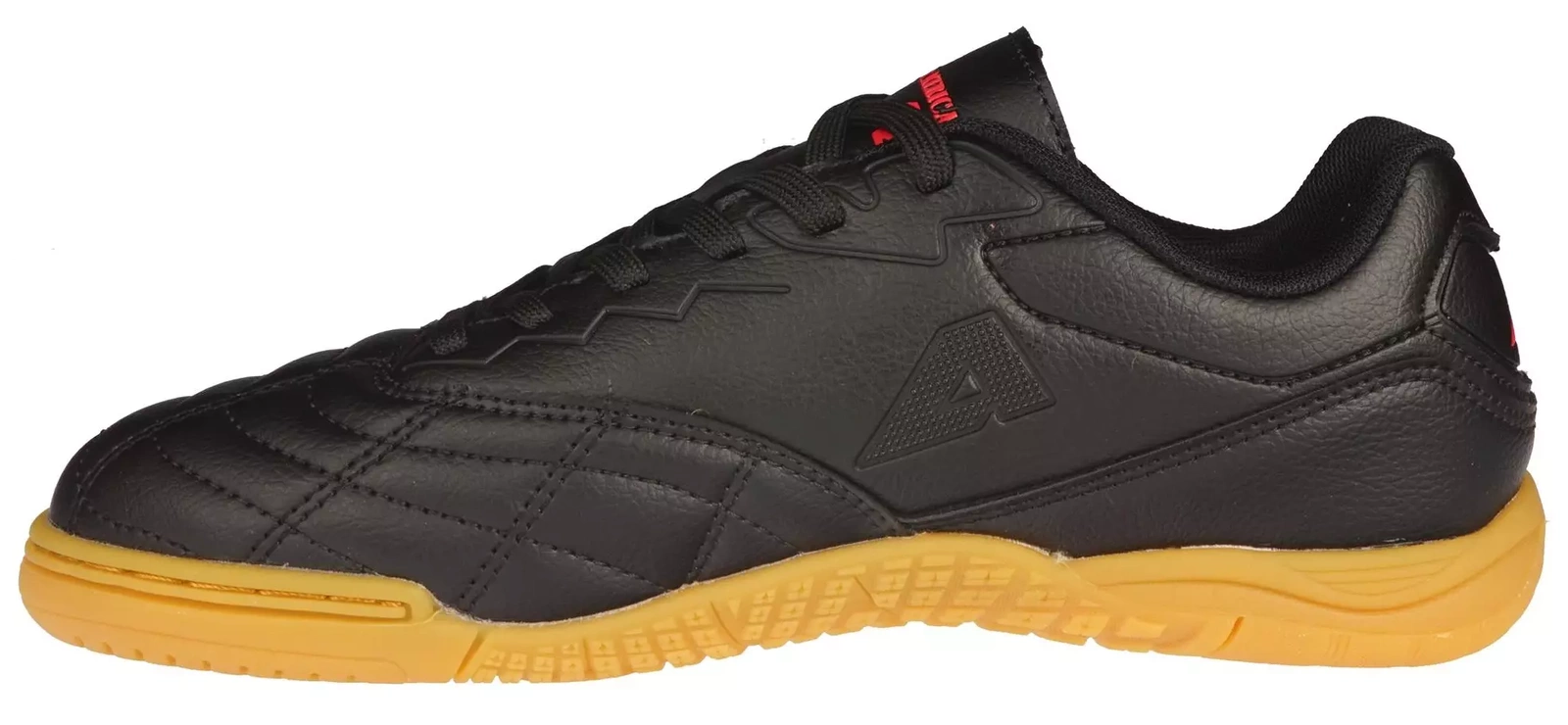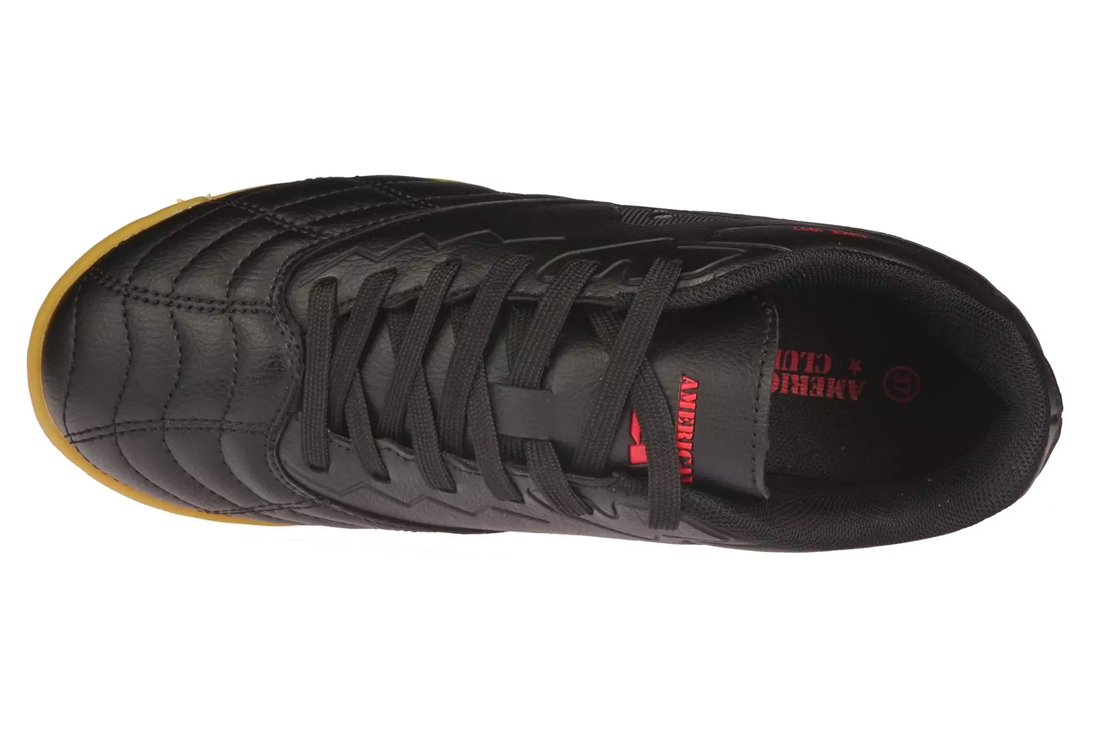 - Młodzieżowe obuwie halowe Firmy American Club w kolorze czarnym wykonane z wysokiej jakości materiałów. Gumowa podeszwa zapobiega ślizganiu się, a sznurowadła pozwalają na idealne dopasowanie obuwia do stopy.