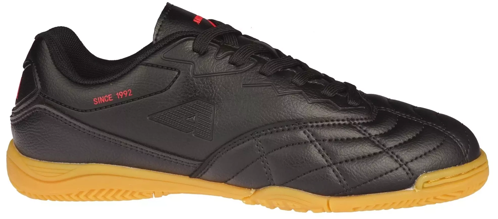 Męskie halówki American Club w kolorze czarnym. Wykonane z trwałej skóry ekologicznej, natomiast wewnątrz zastosowano wysokiej jakości, miękki materiał tekstylny. Wszystko to sprawia, że komfort użytkowania tego produktu jest na wysokim poziomie Buty halowe American Club posiadają niebrudzącą podeszwę, zrobioną z gumy oraz posiadającą bieżnik który zapewnia dobrą przyczepność do podłoża. Dużą zaletą tego produktu są również sznurowadła dzięki którym możesz pozwolić sobie na idealne dopasowanie halówek do Twojej stopy. Przód buta jest dodatkowo wzmocniony i przeszywany. Pięta jest usztywniona. Obuwie halowe sprawdzi się nie tylko podczas zajęć sportowych na hali ale również jest świetna propozycją do szkoły czy pracy.