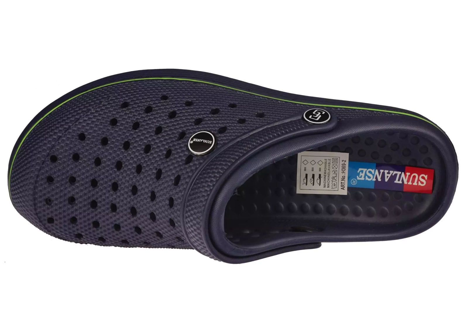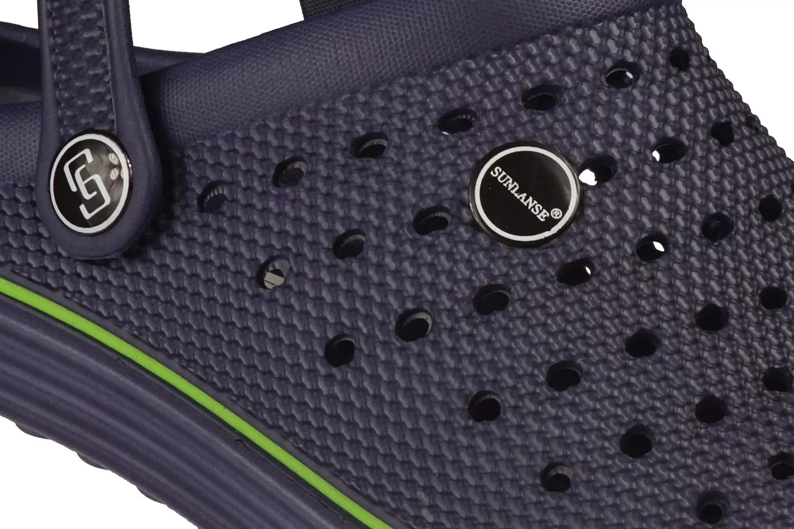 Klapki basenowe młodzieżowe Sunlanse to doskonały wybór dla każdego, kto ceni sobie wygodę i komfort. Klapki typu crocs są bardzo praktyczne i wygodne. Wykonane z wysokiej jakości pianki zarówno na podeszwie, jak i pasku, gwarantują miękkość i lekkość. Modny design w kolorze granatowym sprawia, że będą świetnym uzupełnieniem letniej garderoby. Doskonale sprawdzą się zarówno na wakacjach, przy basenie, jak i podczas codziennego użytku w domu. Piankowa podeszwa zapewnia stabilność i komfort podczas chodzenia, a antypoślizgowa konstrukcja zabezpiecza przed upadkami. Dzięki przystępnej cenie klapki te są dostępne dla każdego, który ceni sobie wygodę i styl. Wybierz klapki Sunlanse i ciesz się komfortem na każdym kroku!