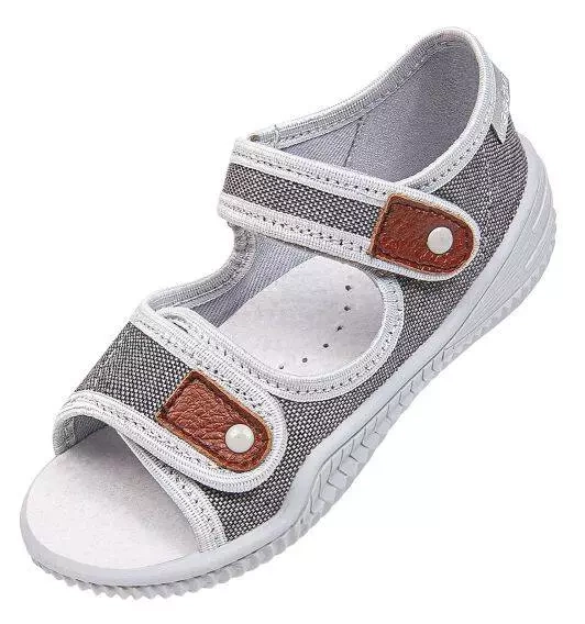 Sandałki dziecięce Viggami w szarym klasycznym kolorze. Posiadają elastyczną antypoślizgową podeszwę która jest wentylowana od spodu, zapewnia ona wygodę, i bezpieczeństwo naszych pociech. Kapcie są zapinanie na rzep co znacznie ułatwia samodzielne zakładanie obuwia przez dziecko oraz zapewnia idealne dopasowanie się do stopy. Buciki sprawdzą się do przedszkola czy szkoły jak i harcowania po domu. Produkt jest stworzony w Polsce przez firmę Viggami. Buciki są lekkie wygodne i nie mają nosków co jeszcze bardziej poprawia wentylację, dodatkowo posiadają certyfikat zdrowej stopy który zapewnia, że obuwie wykonane jest prawidłowo pod względem konstrukcyjnym, technologicznym i materiałowym oraz prezentuje się estetycznie. Dzięki niemu Rodzice mają pewność, że stópki ich dzieci są bezpieczne i właściwie się rozwijają.