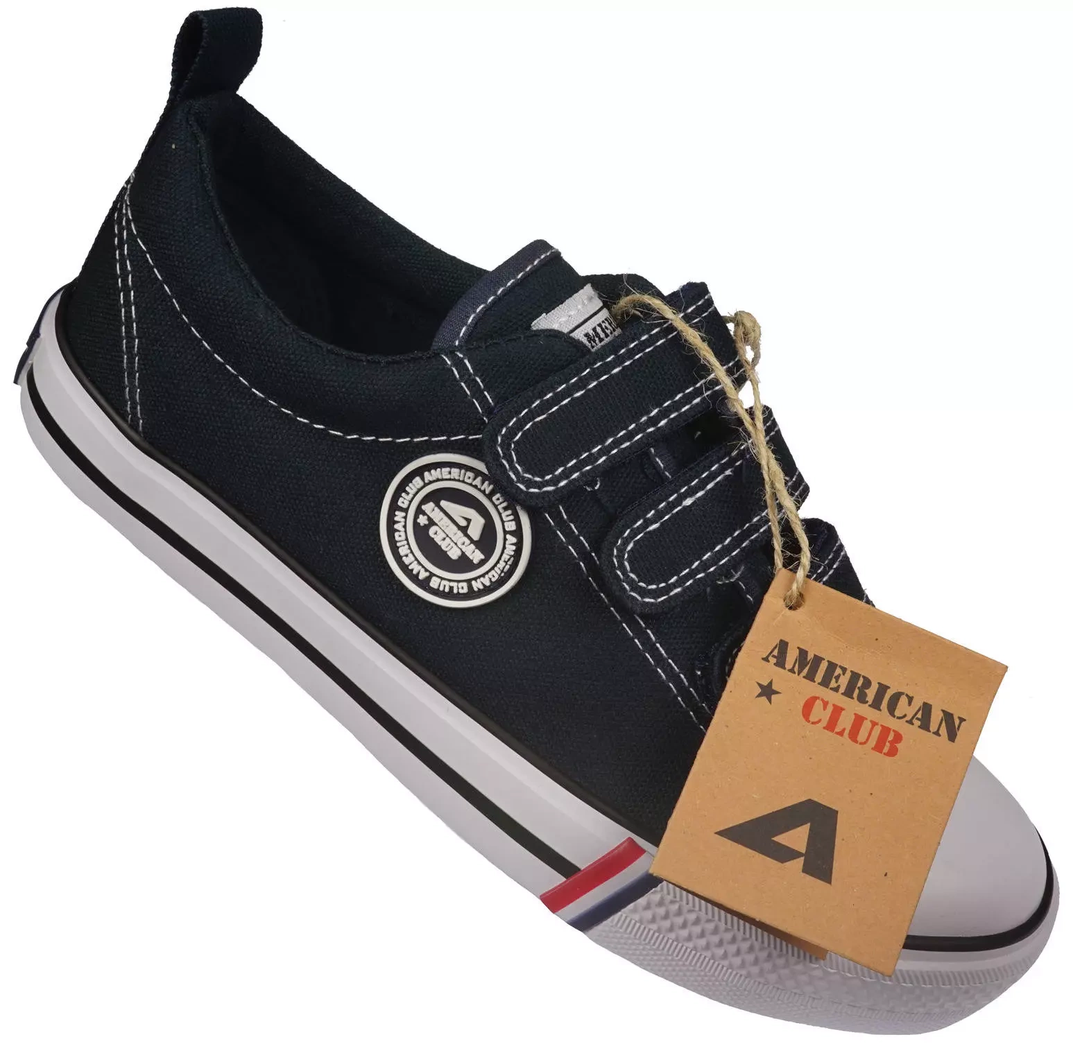 - Tenisówki męskie firmy American Club w kolorze granatowym. Wykonane zostały bardzo solidnie i starannie z materiałów tekstylnych o wysokiej jakości. Buty posiadają grubą, gumową podeszwę co zapewnia im trwałość i bardzo dobrą przyczepność do podłoża.