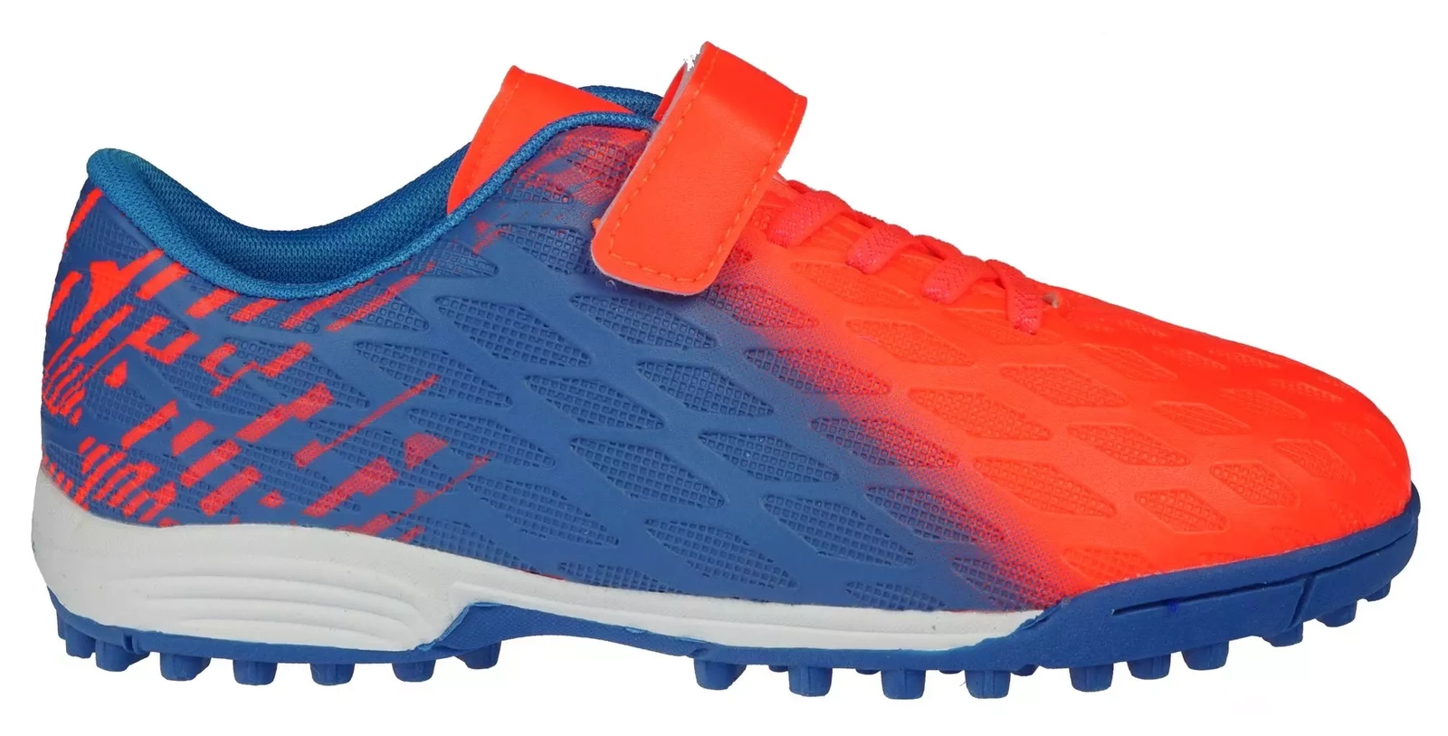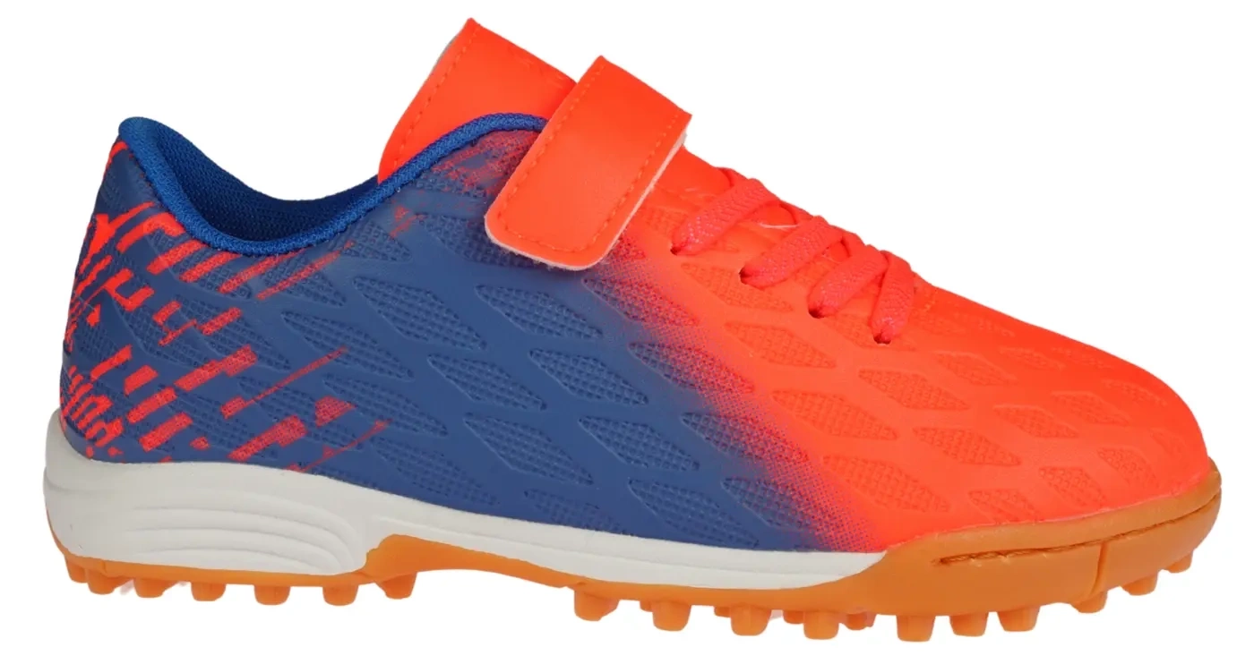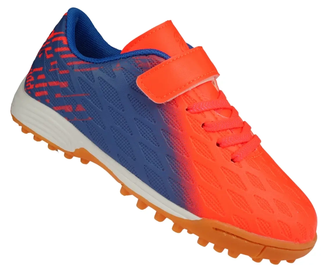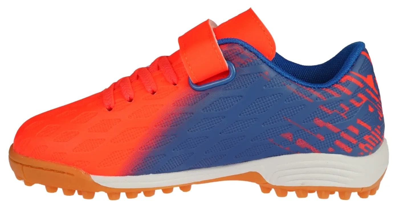 Dziecięce turfy Apawwa w kolorze pomarańczowo niebieskim. Obuwie sportowe wykonane z tworzyw sztucznych wysokiej jakości które zapewniają dobre dopasowanie do stopy oraz trwałość. Wewnątrz zastosowano, miękki materiał tekstylny. Wszystko to sprawia, że komfort użytkowania tego produktu jest na wysokim poziomie. Podeszwa z bieżnikiem zapobiega ślizganiu się i zapewnia dobrą przyczepność do podłoża, buty są przeznaczone na sztuczne nawierzchnie trawiaste - orliki. Dużą zaletą czarnych turfów sportowych są dopasowanie do stopy oraz wykończenie - buty są wykonane bardzo ergonomicznie co zapewnia komfort nawet przy bardzo dynamicznym poruszaniu się dodatkowo posiadają piankową profilowaną wkładkę wykończoną tkaniną. Sportowe buty na orlik od firmy Apawwa posiadają wzmocnioną piętę. Turfy z firmy Apawwa są znane ze swojej wyjątkowej wytrzymałości, co sprawia, że doskonale sprawdza się podczas intensywnych treningów. Rzepy umożliwiają szybkie i łatwe zakładanie i idealne dopasowanie do stopy, co gwarantuje stabilność i pewność ruchu. Buty posiadają miękką wyściółkę. Wybierając obuwie na orlik nie możesz pominąć tego modelu.