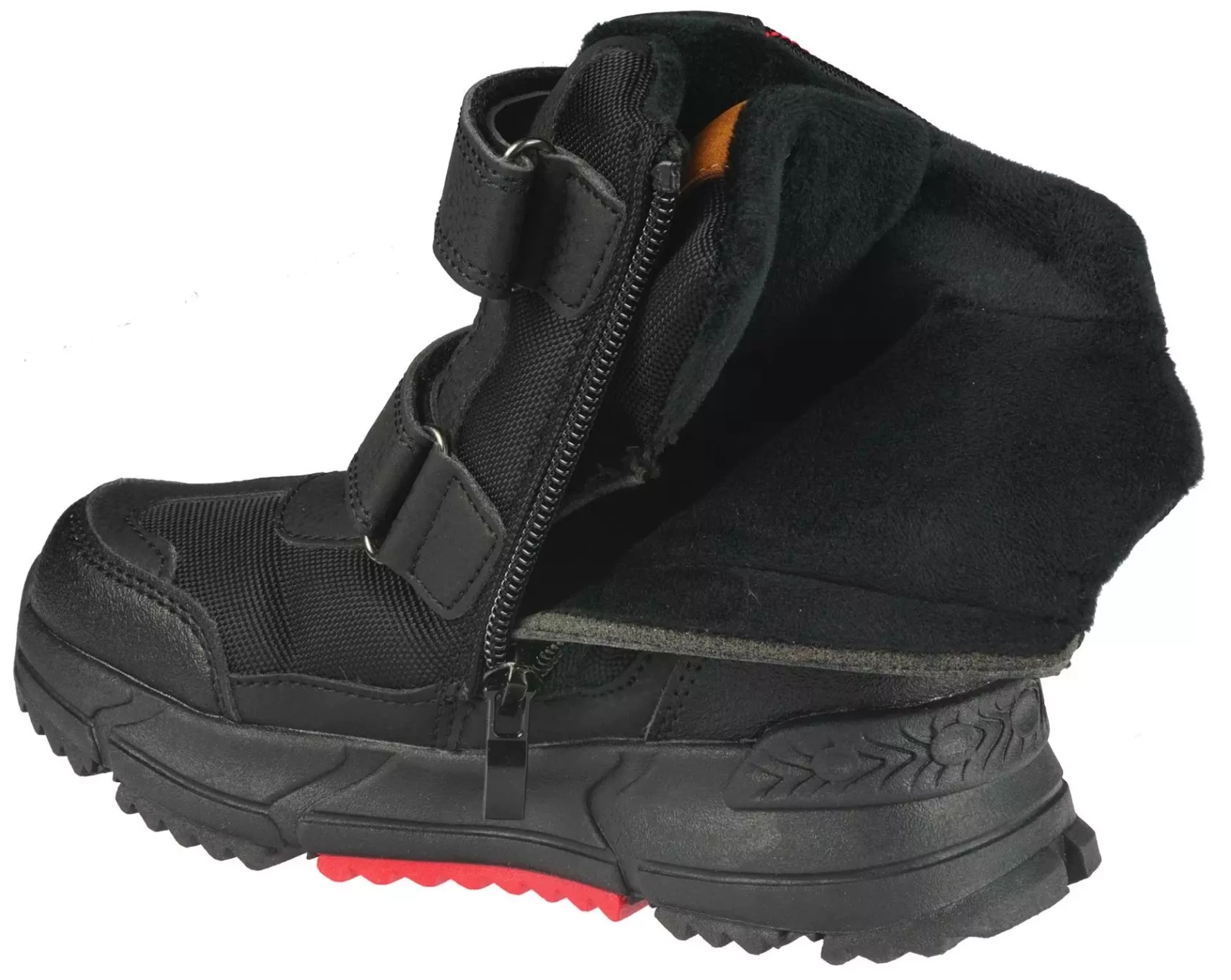 - Zimowe buty dziecięce Firmy American Club w kolorze czarnym z dodatkiem czerwonego. Wykonane z wysokiej jakości materiału typu softshell w ciekawym designie. Wnętrze buta jest ocieplane co zapewni odpowiednią temperaturę nawet podczas zimowych dni.