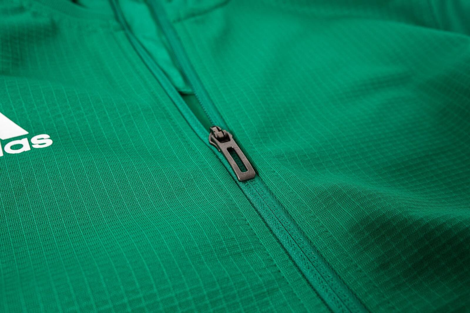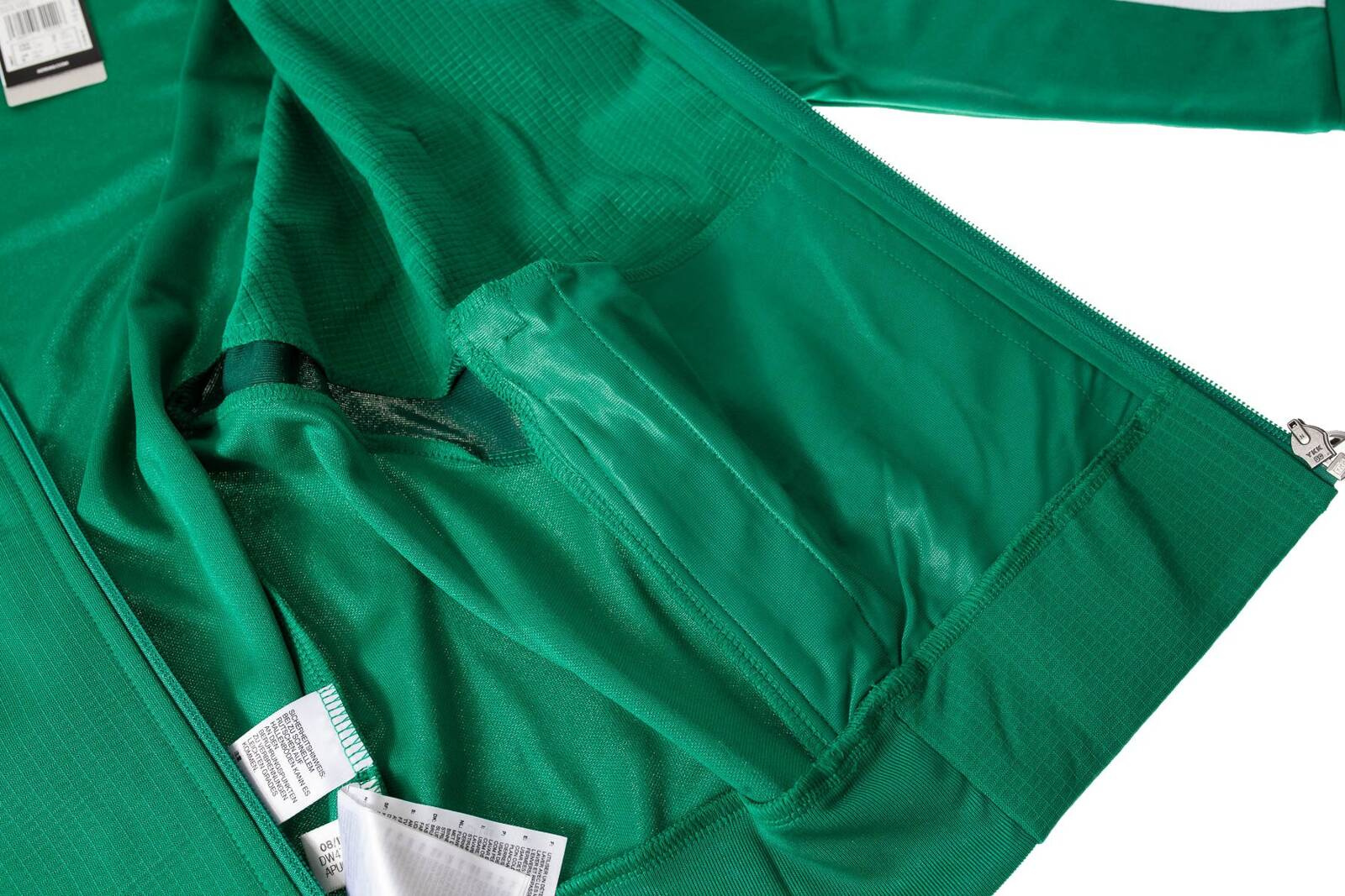 Dziecięca bluza w kolorze zielonym firmy Adidas z kolekcji Tiro 19 Training została zaprojektowana z myślą o juniorach czynnie uprawiających wszelkie dyscypliny sportowe; świetnie nadaje się na treningi, do biegania, ale też do codziennego użytkowania. Wykonana została w 100% z poliestru najwyższej jakości w kolorze intensywnej zieleni. Atutami bluzy młodzieżowej jest zastosowanie technologii Climalite, dzięki której materiał odprowadza wilgoć z powierzchni skóry zapewniając jej komfort i suchość oraz obecność dwóch bocznych kieszeni umożliwiających przechowywanie najpotrzebniejszych przedmiotów. Bluza Adidas posiada zamek błyskawiczny na całej długości. Logo ulokowane jest na prawej piersi. Wstawki w postaci białych pasków znajdują się na rękawach zakończonych, podobnie jak dół modelu, ściągaczami. Bluza jest praktyczna i wygodna, nie krępuje ruchów.