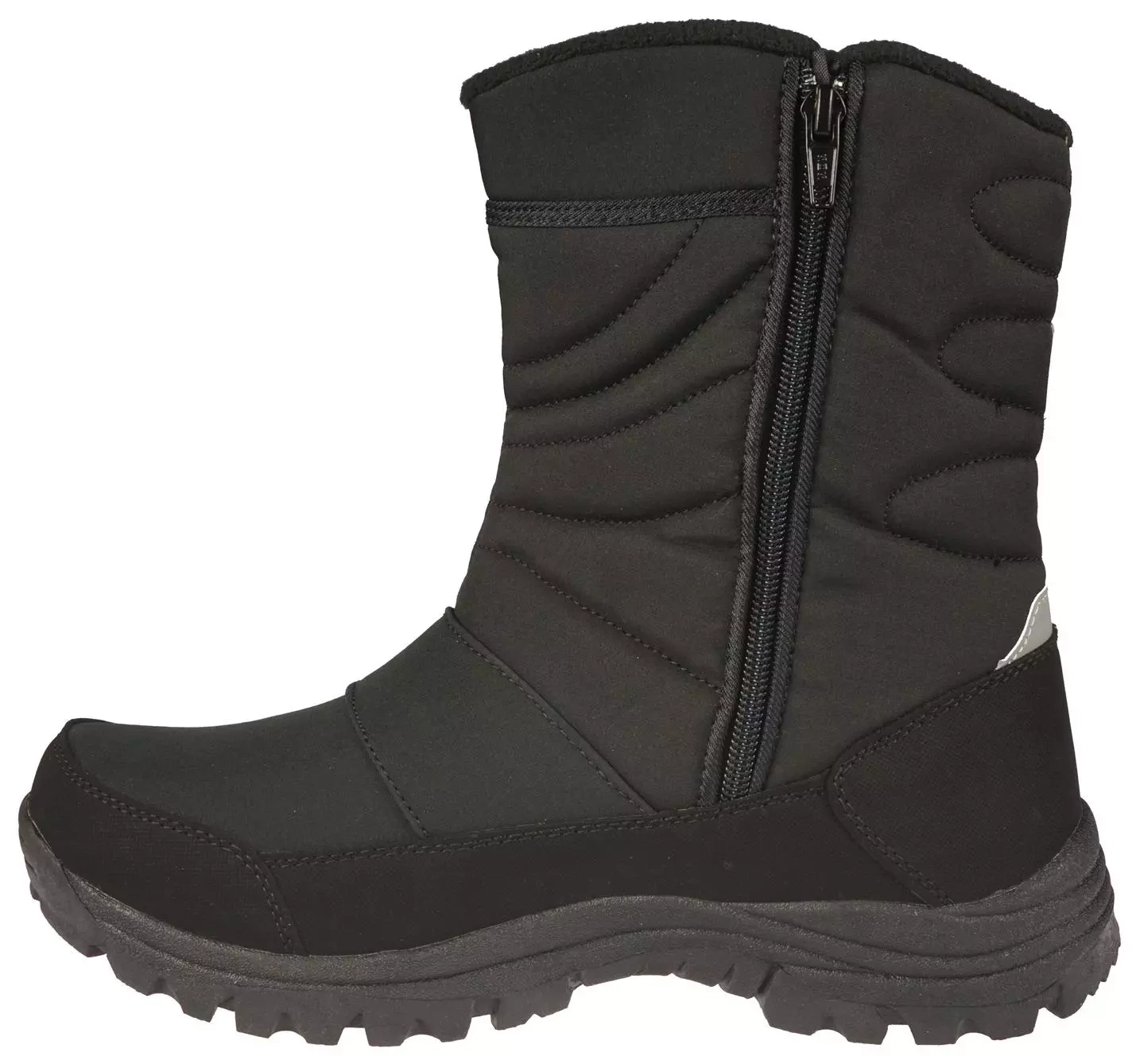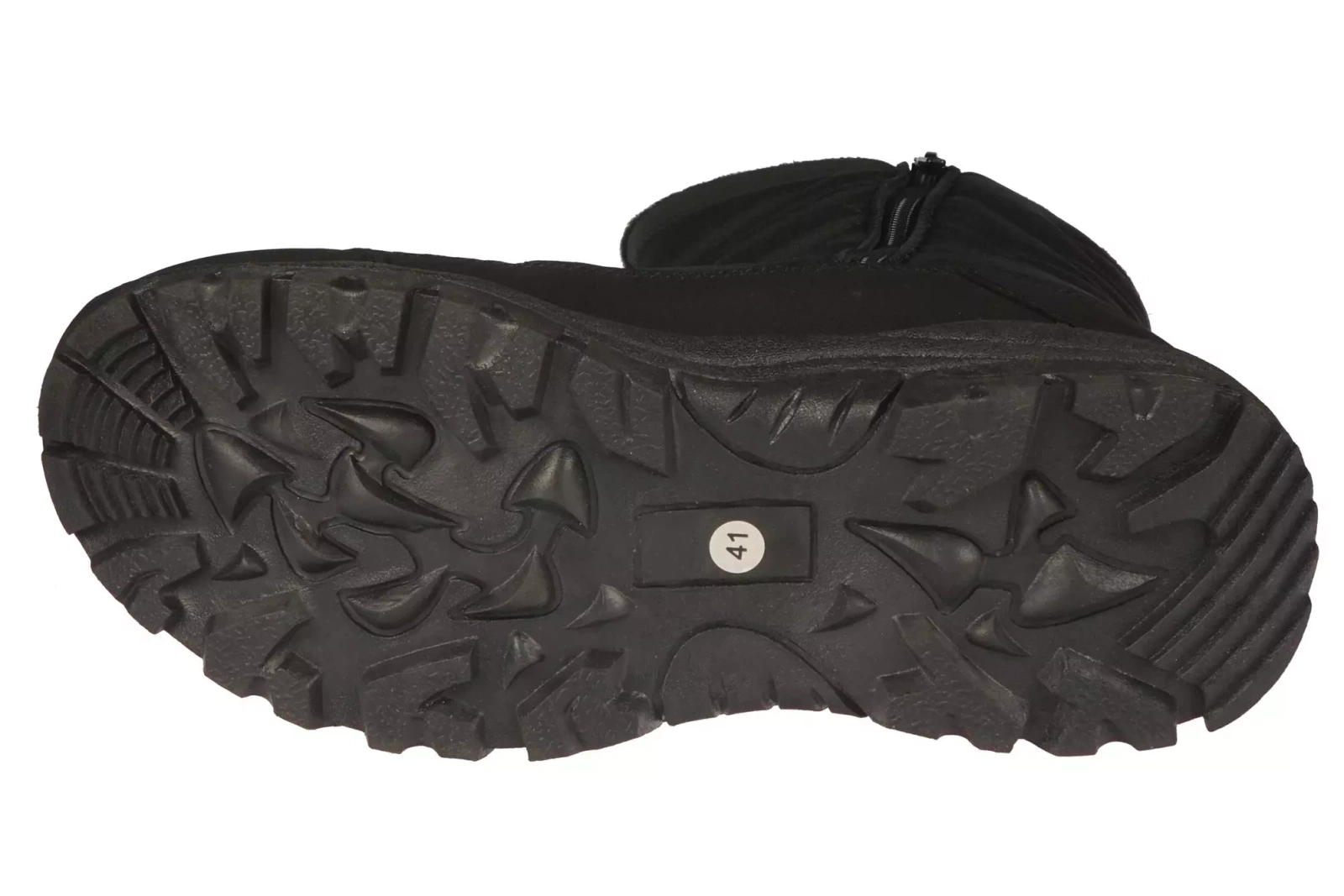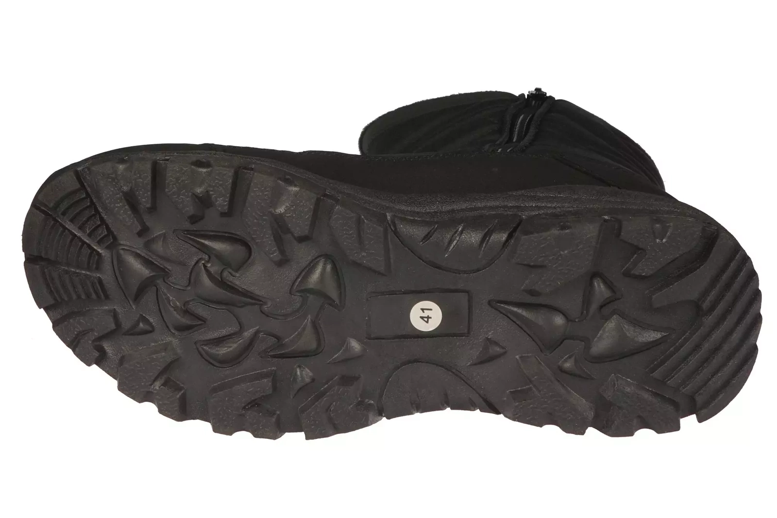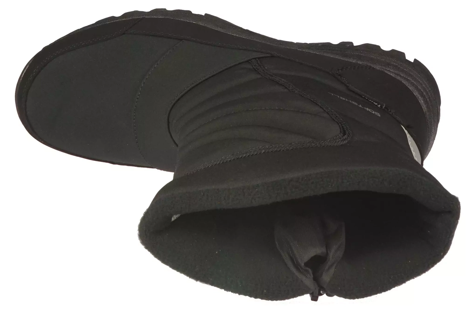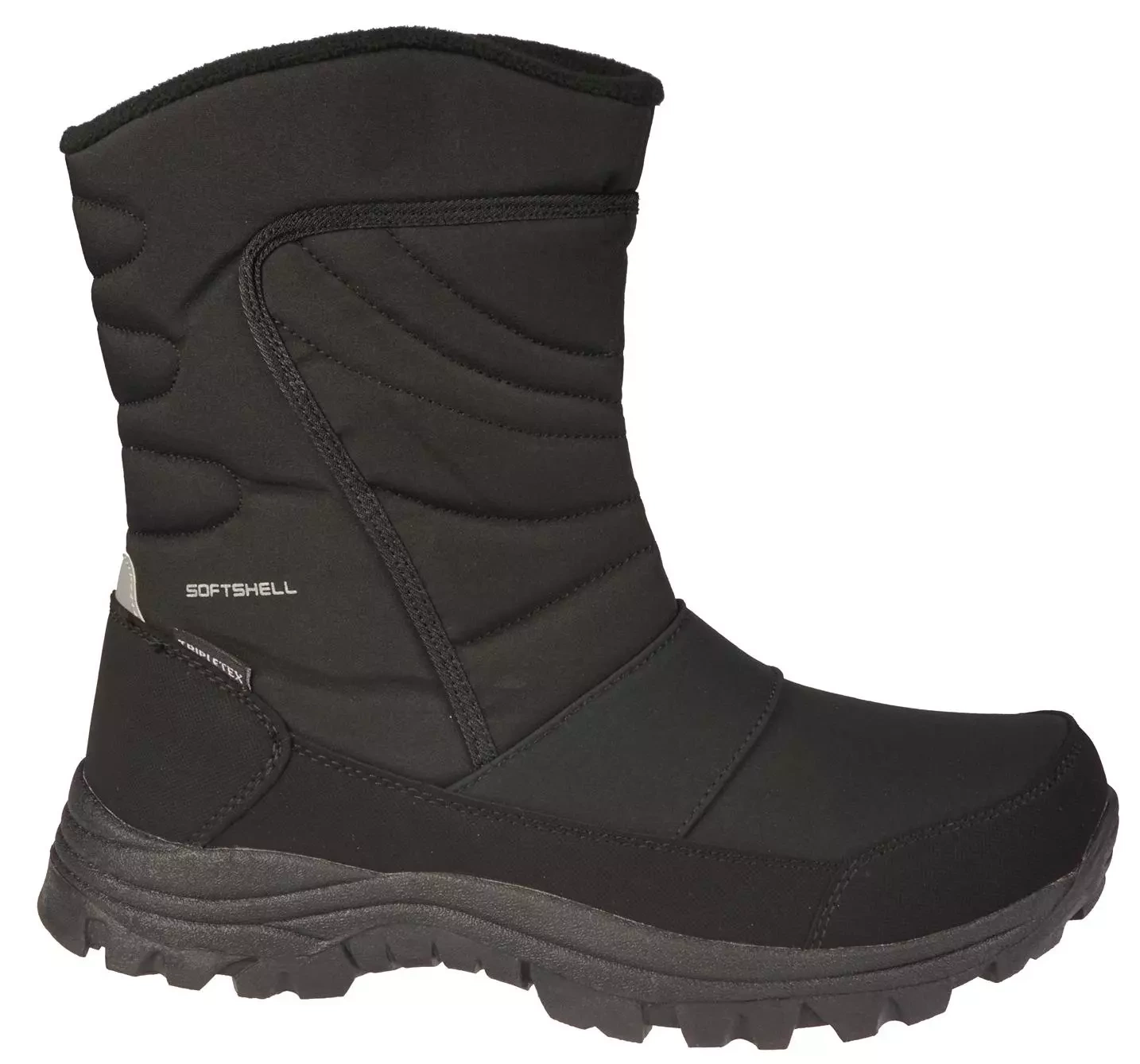 Zimowe śniegowce męskie Firmy American Club w kolorze czarnym zapinane na zamek. Obuwie za kostkę jest wygodne i komfortowe, a prosty design idealnie wpasuje się w obecne trendy. Stworzone z modnego i praktycznego materiału softshell pozwala w łatwy sposób unikać zabrudzeń oraz zabezpiecza przed wiatrem i deszczem. Śniegowce męskie posiadają wodoodporną membranę Tripletex, która w zaawansowany sposób odprowadza wilgoć. Wysokie buty zimowe posiadają grubą podeszwę z bieżnikiem, która dba o dobrą przyczepność do podłoża oraz zapobiega przed ślizganiem. Wnętrze obuwia zimowego jest ocieplane miękkim polarem co zapewni odpowiednią temperaturę nawet podczas zimowych dni. Śniegowce posiadają wzmocnioną piętę oraz przód cholewki pięta jest także usztywniona. Zimowe buty firmy American Club są praktyczne i łatwe w utrzymaniu czystości, a wysoka jakość materiałów gwarantuje komfort i wytrzymałość. Idealne męskie ocieplane obuwie zimowe do codziennego użytku czy też w górskie wyprawy.