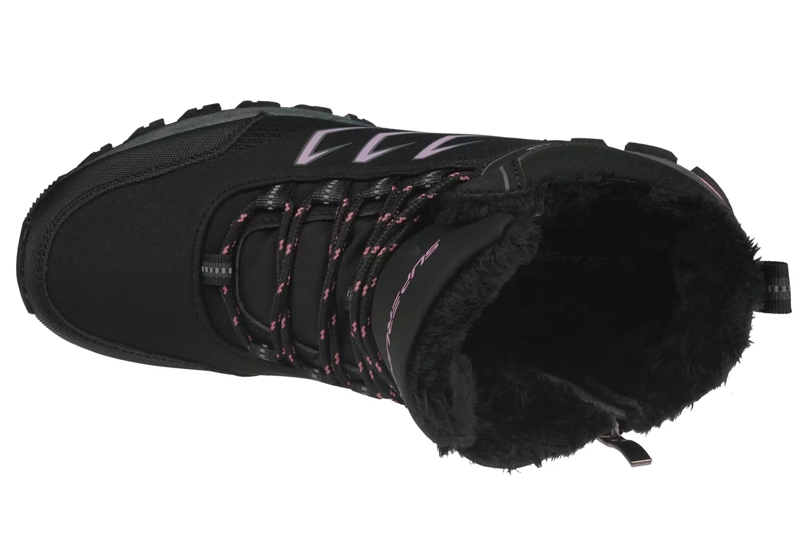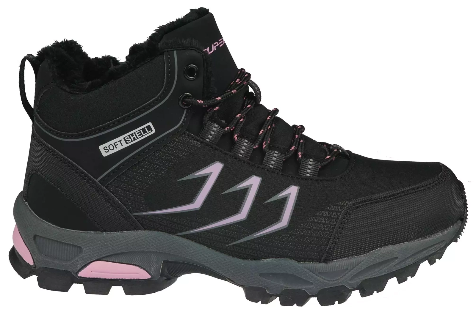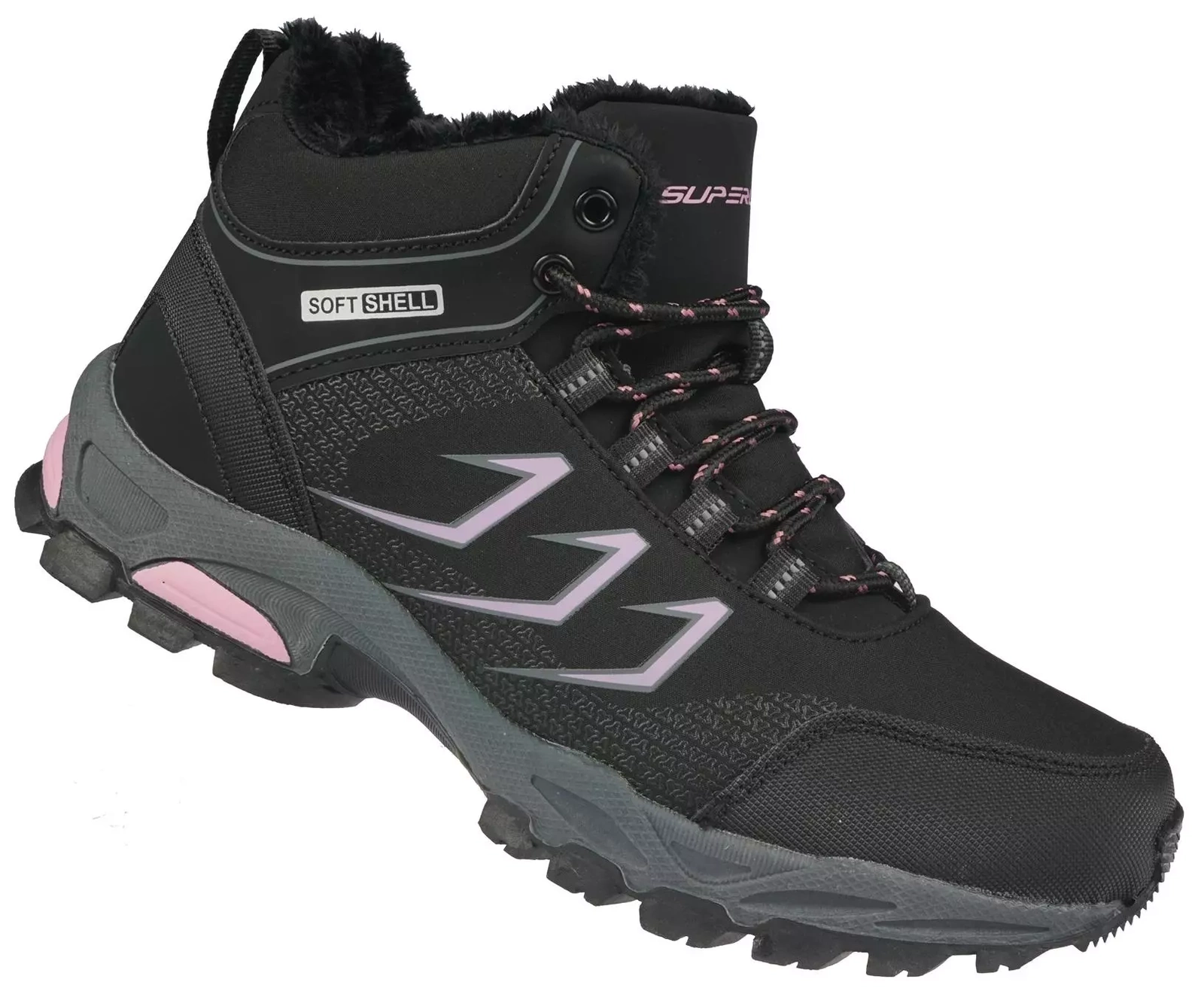 - Zimowe buty damskie Firmy Superun w kolorze czarnym z dodatkiem ciemnego różu. Posiadają cholewkę Softshell która chroni przed niską temperaturą, wiatrem, deszczem oraz śniegiem. Zimowe obuwie jest ocieplone kożuchem.