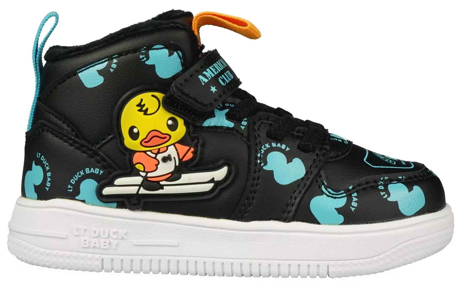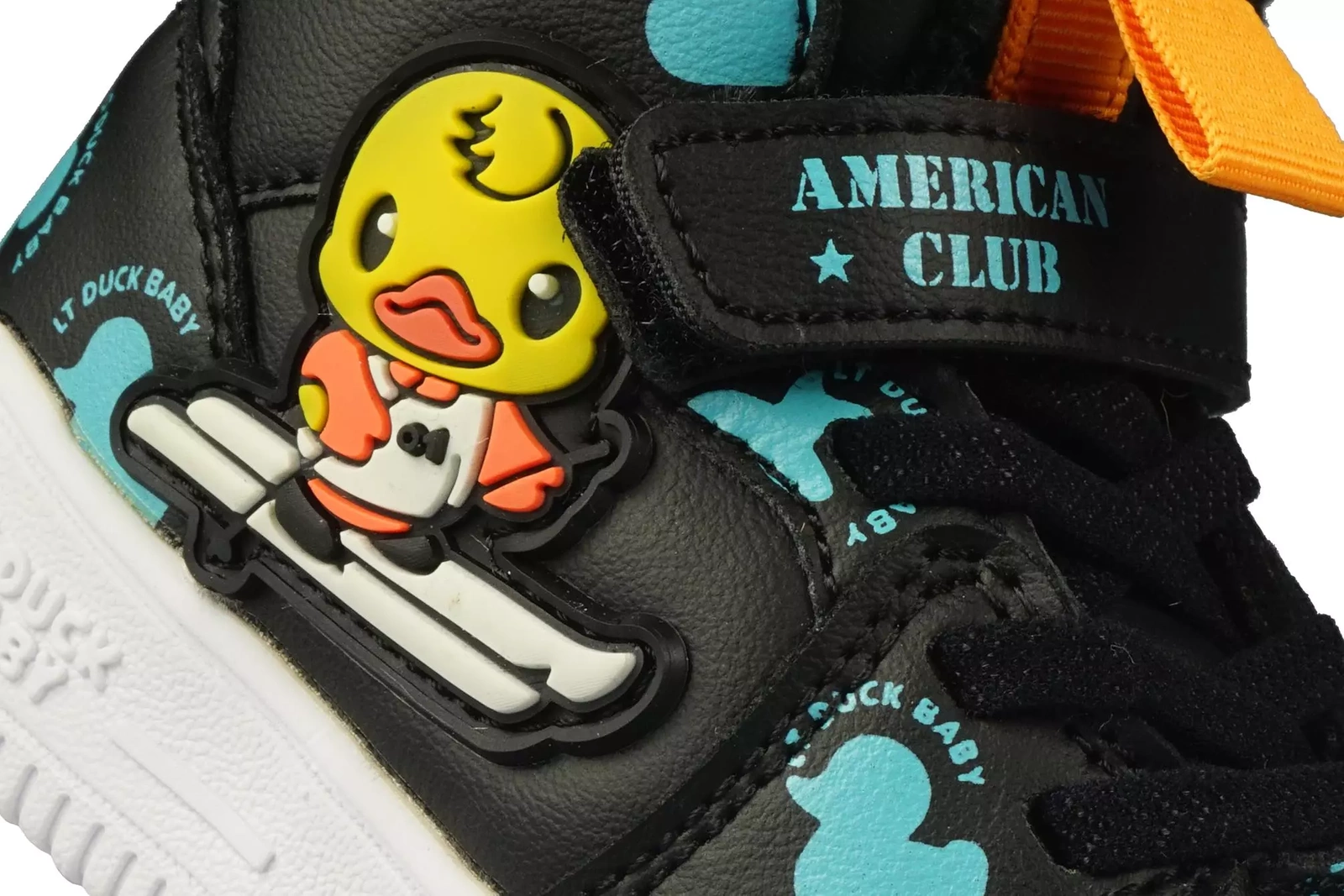 W połączeniu klasycznego czarnego koloru z energetycznym niebieskim, buty ABD-27 przyciągają wzrok radosnym nadrukiem z motywem kaczki, który stanowi subtelną ozdobę. Kolorowy nadruk przełamuje stonowaną kolorystykę, dodając obuwiu charakteru, jednocześnie nie odbiegając od eleganckiej prostoty. Taki design sprawia, że buty doskonale komponują się z odzieżą codzienną i przejściową, zapewniając maluchom nie tylko wygodę, ale również modny wygląd. Buty zimowe dziecięce American Club ABD-27 to wygodne, funkcjonalne i estetyczne obuwie, które sprawdzi się w okresie przejściowym. Doskonałe na co dzień, zarówno do szkoły, jak i na rodzinne wypady na świeżym powietrzu.