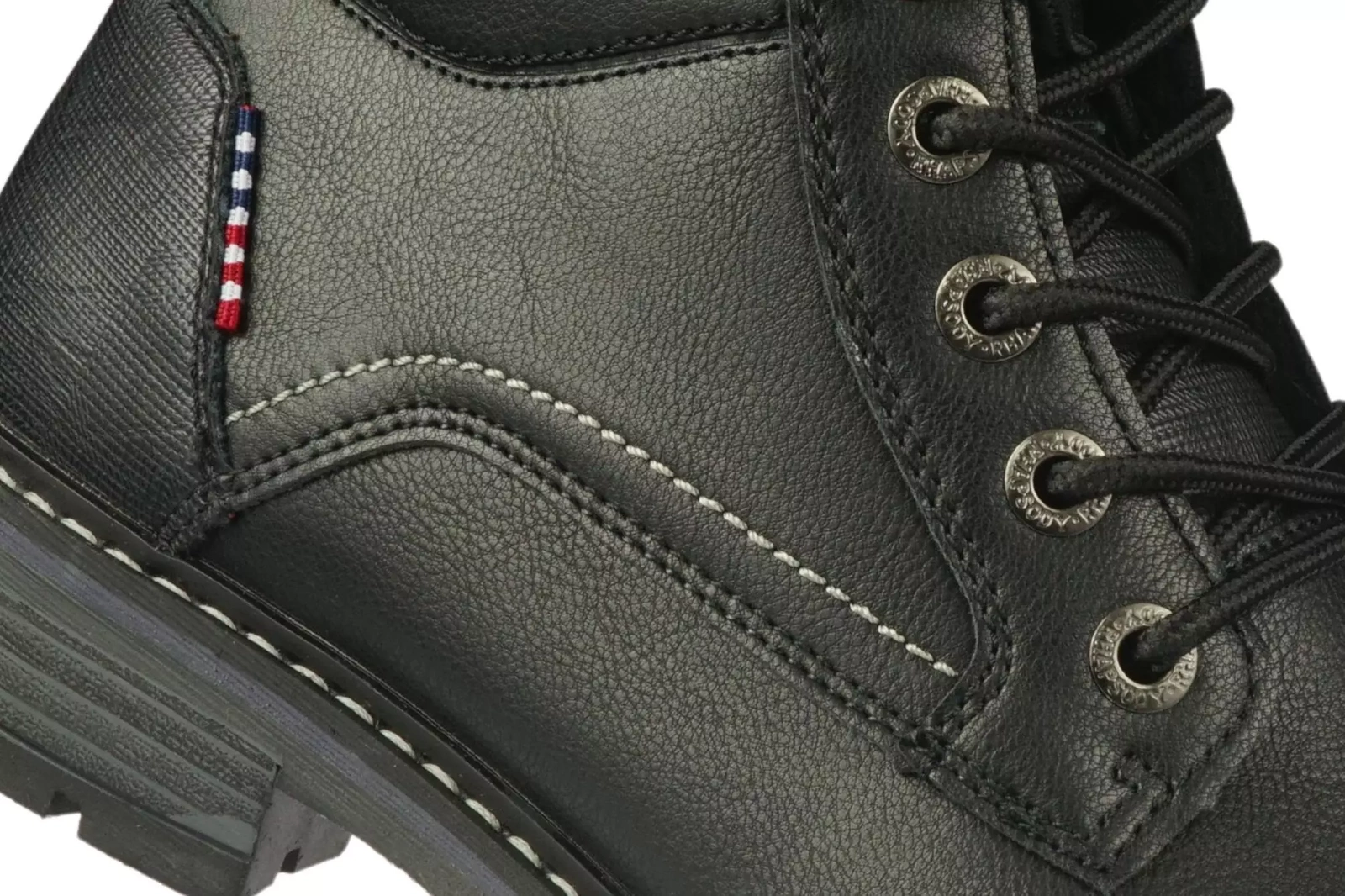 Wysoka jakość wykonania oraz klasyczny, ponadczasowy design to cechy, które wyróżniają ten model. Cholewka z ekoskóry w eleganckich odcieniach czerni pasuje zarówno do casualowych, jak i nieco bardziej formalnych stylizacji. Proste, sznurowane zapięcie i stabilna, masywna podeszwa podkreślają męski charakter obuwia, a subtelne detale, takie jak eleganckie wykończenie cholewki, nadają butom nowoczesnego wyglądu.