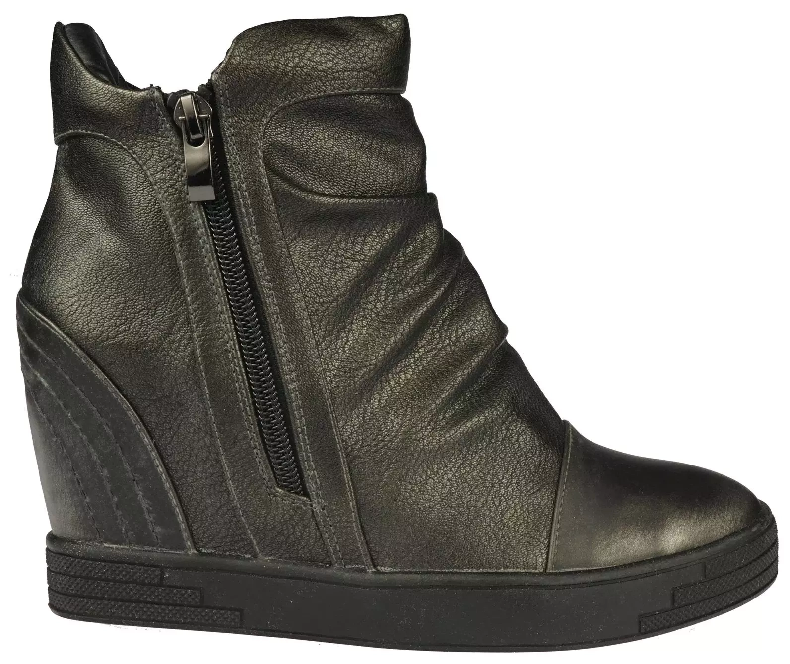 Srebrny kolor eko-skóry w połączeniu z metalicznym połyskiem to wyróżniający się element tego modelu. Ozdobny zamek na cholewce stanowi subtelny detal, który nadaje butom nowoczesnego, miejskiego charakteru. Całość jest elegancka, ale również odpowiednia do codziennego noszenia, dzięki czemu buty mogą stanowić element zarówno casualowych, jak i nieco bardziej wyszukanych stylizacji.