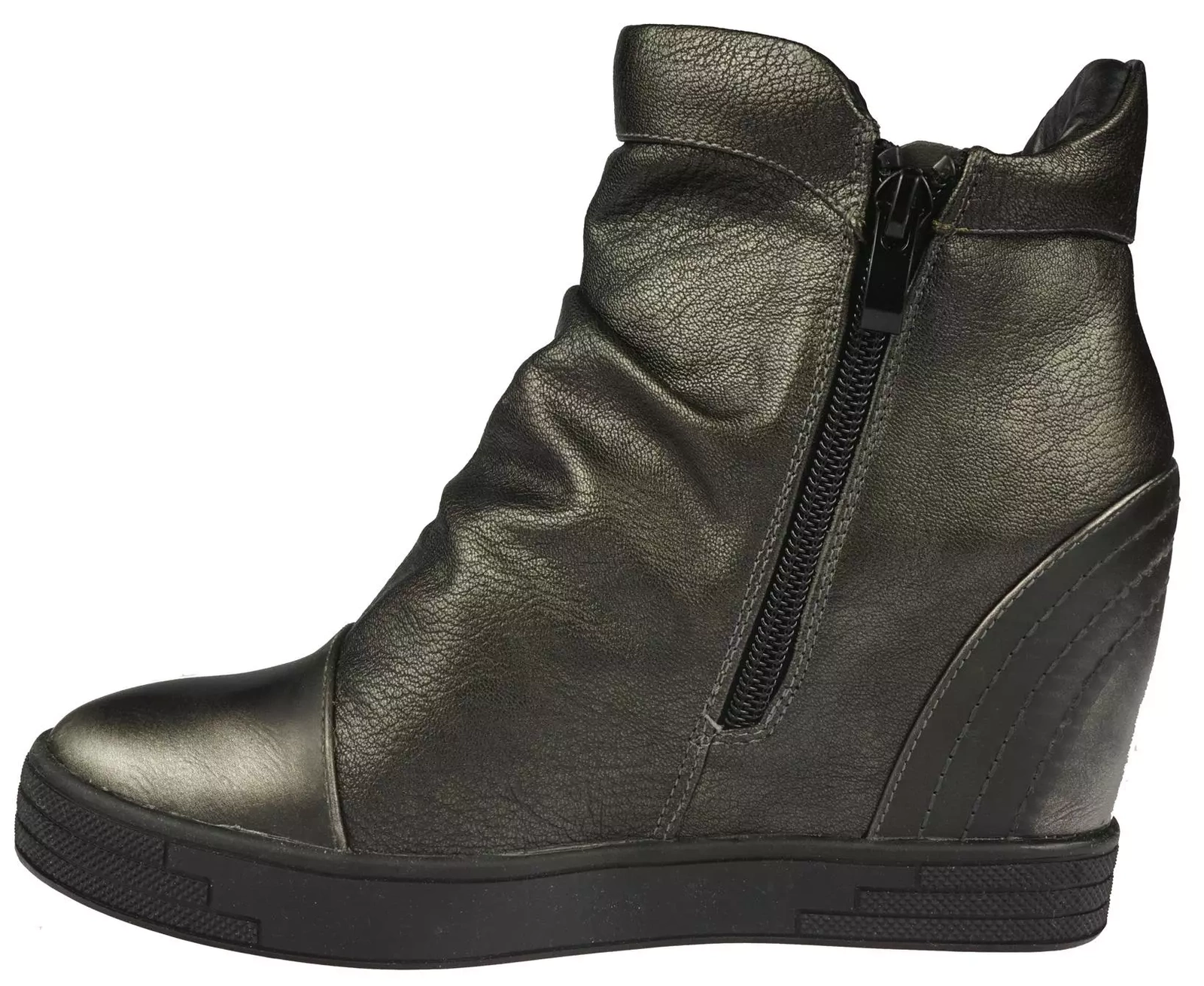 Buty przejściowe Sergio Leone w kolorze srebrnym to propozycja, która łączy elegancję z funkcjonalnością. Wykonane z eko-skóry w metalicznym odcieniu, stanowią modny akcent w każdej jesiennej stylizacji. Ukryty koturn subtelnie dodaje wysokości, podczas gdy materiałowe wnętrze zapewnia komfort termiczny w chłodne dni. Ozdobny zamek oraz wszyty zamek po wewnętrznej stronie buta ułatwiają zakładanie i dodają nowoczesnego charakteru.