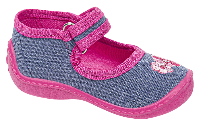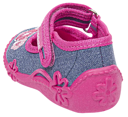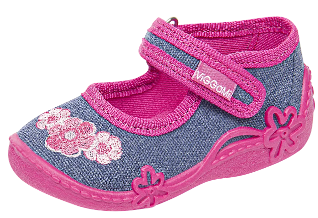 - Tenisówki dziecięce Viggami w kolorze granatowym z dodatkiem różu i grafiką kwiatuszka. Kapcie są zapinanie na rzep co znacznie ułatwia samodzielne zakładanie obuwia przez dziecko. Posiadają certyfikat zdrowej stopy.
