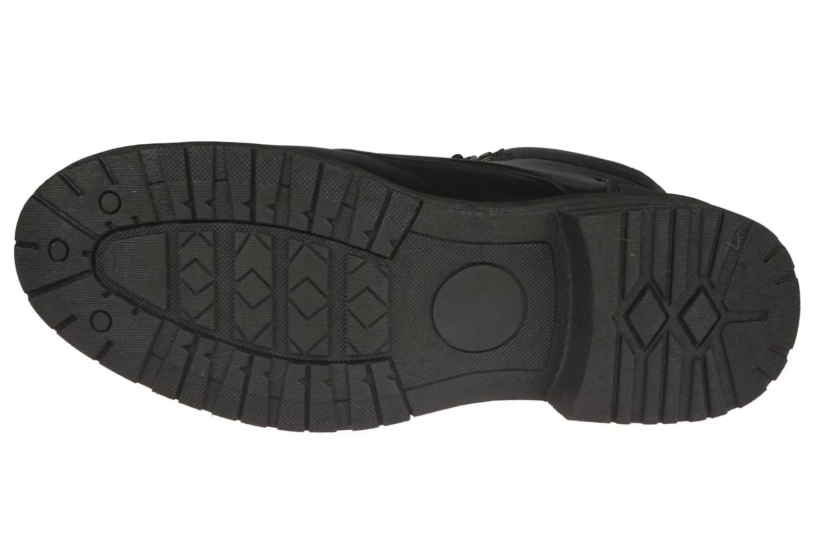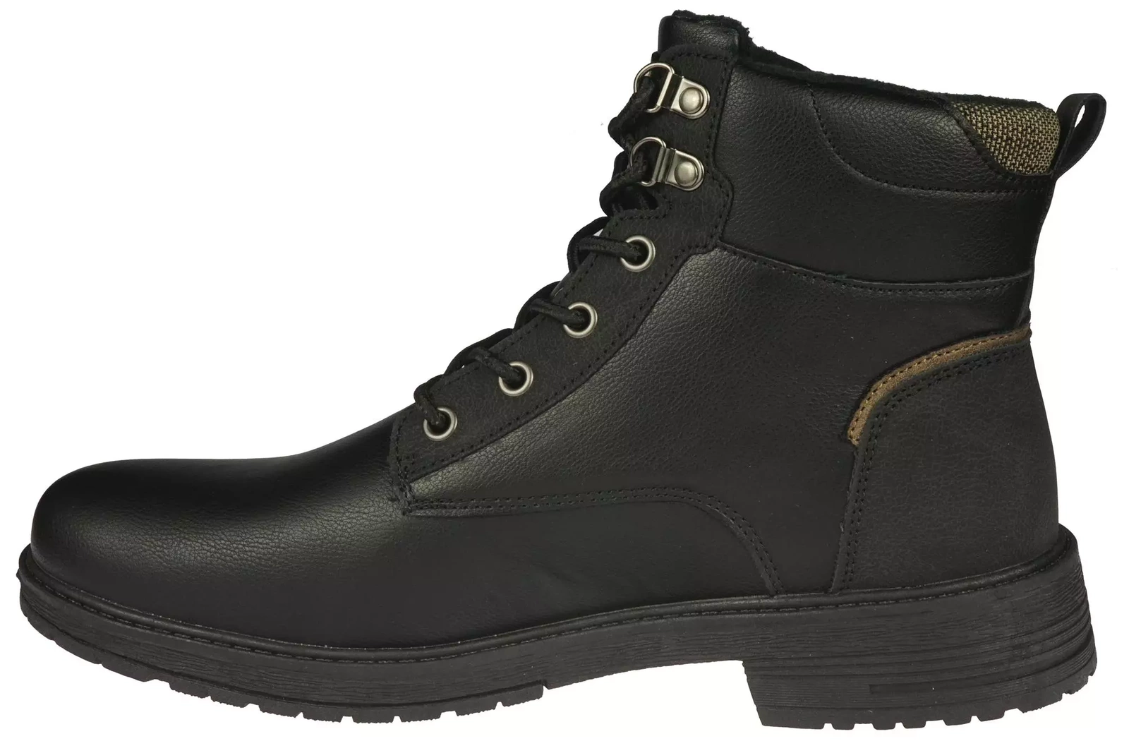 - Zimowe obuwie męskie American za kostkę. Czarna kolorystyka i elegancki styl z połączeniem wysokiej jakości materiałów tworzą idealną propozycję na zimne dni. Buty ocieplane od wewnątrz na grubej podeszwie zapewniają ciepło i wygodę.