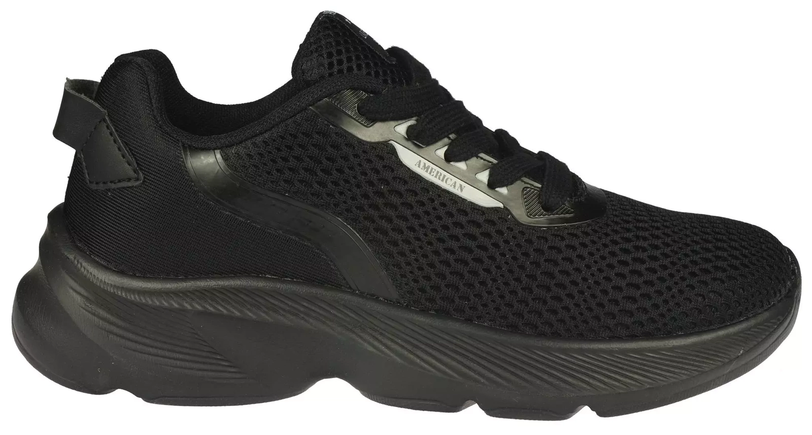 - Młodzieżowe buty sportowe Firmy American Club w kolorze czarnym. Wykonane zostały starannie i solidnie z materiałów tekstylnych w bardzo ładnym i ciekawym designie. Obuwie jest przewiewne i lekkie. Wnętrze oraz wkładka z tkaniny o wysokiej jakości.