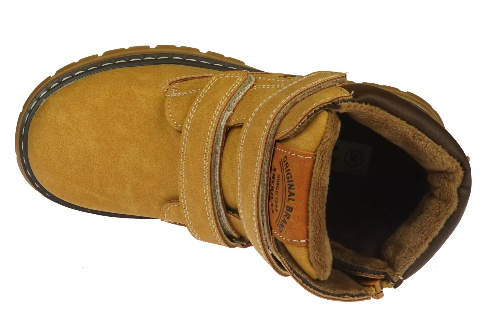 - Zimowe buty dziecięce Firmy American Club w kolorze brązowym. Wykonane z wysokiej jakości skóry ekologicznej w ciekawym designie. Wnętrze buta jest ocieplane co zapewni odpowiednią temperaturę nawet podczas zimowych dni.
