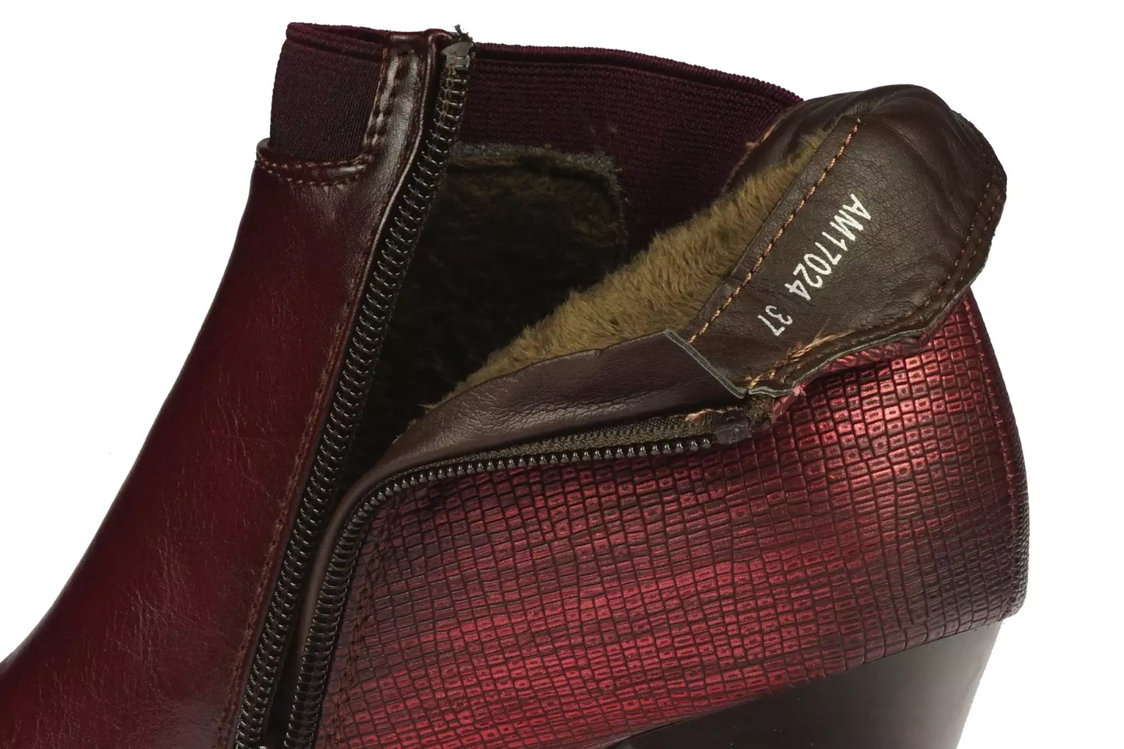 • Eleganckie buty zimowe damskie Urban Projekt w kolorze bordowym to idealny wybór na zimowe dni, łączący styl, komfort oraz funkcjonalność. Ozdobna guma oraz migdałowy nosek nadają całości subtelnego, ale jednocześnie efektownego charakteru.