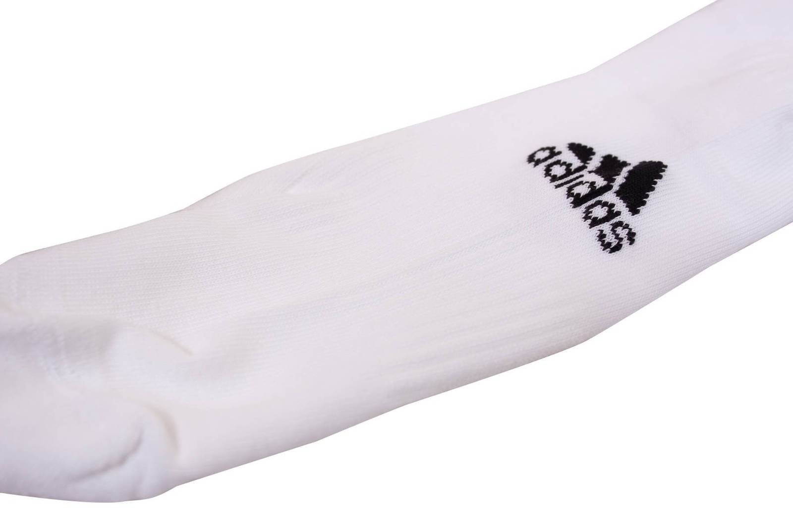 Męskie długie skarpety firmy Adidas zostały wykonane z połączenia trzech materiałów: oddychającej bawełny (58%), wytrzymałego poliestru (38%) i elastycznego spandexu (4%). Idealnie sprawdzą się przede wszystkim jako część codziennej garderoby urozmaicając stylizację. Połączenie klasycznych kolorów: bieli i czeni wpasuje się do każdego stroju. Świetnie wypadną też jako element stroju podczas biegania, meczu piłki nożnej czy do jeżdżenia na rowerze. Skarpety są wygodne i nie mechacą się. Dzięki obecności bawełny w składzie znacząco redukują ilość potu, nie gniotą się dzięki właściwościom poliestru i idealnie dopasowują do stopy przez domieszkę spandexu. Posiadają wstawki w postaci 3 pasków nad kostką oraz logo na froncie. W paczce znajdują się 3 pary. Produkt jest nowy i posiada oryginalne metki.