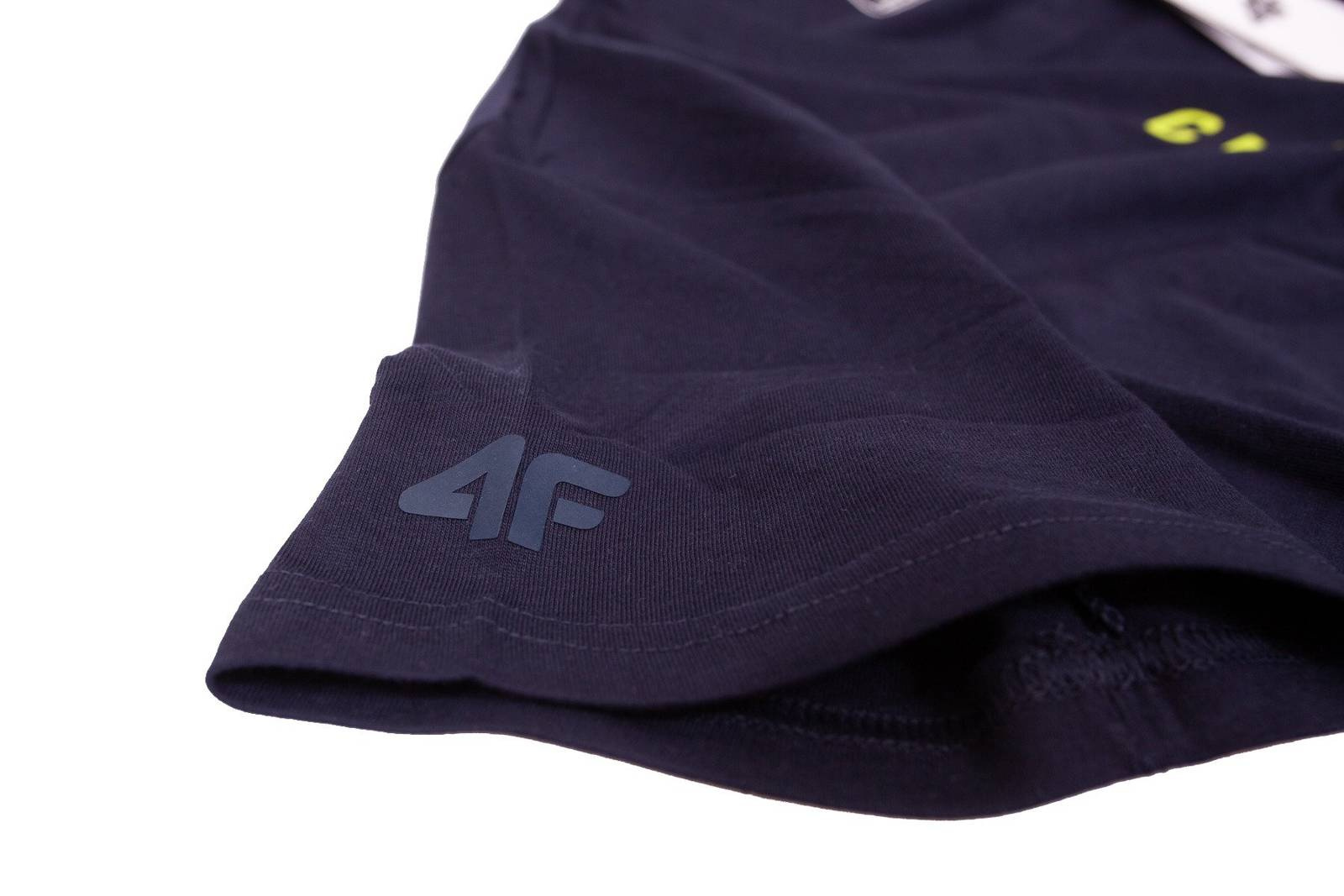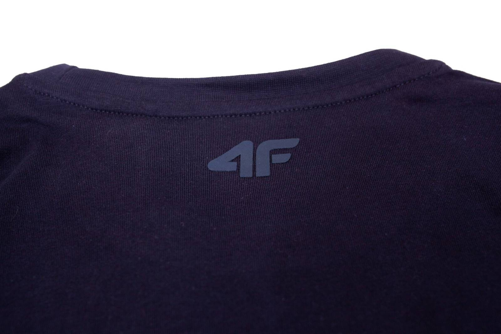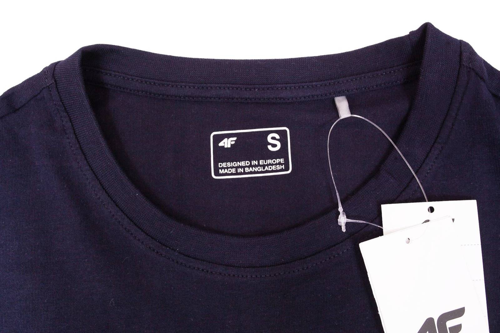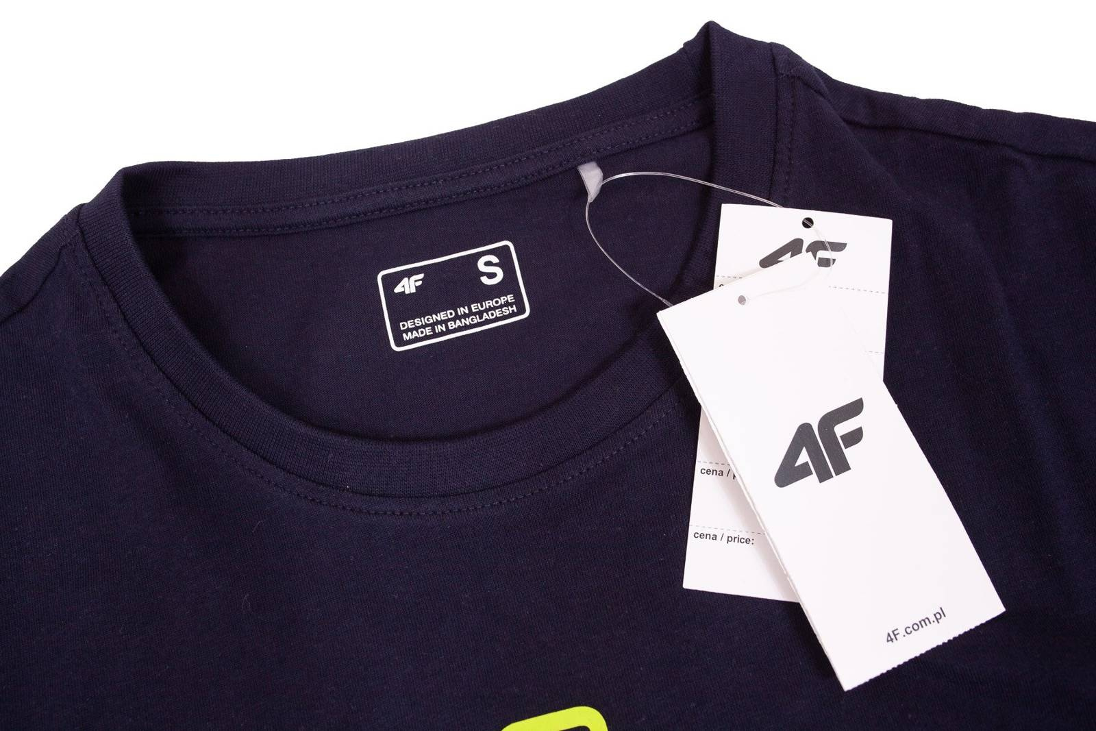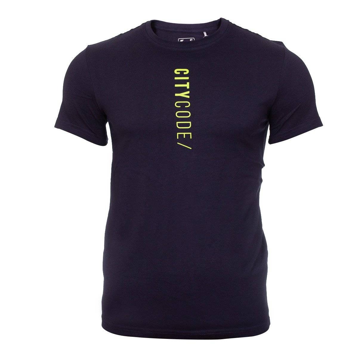 Męska koszulka marki 4F w kolorze granatowym. Została wykonana w 100% z najwyższej jakości higienicznej i przewiewnej bawełny. Sprawdzi się zarówno jako element stroju sportowego, na treningi, do jeżdżenia na rowerze lub biegania albo jako część codziennej garderoby. Materiał, z którego została wykonana jest wytrzymały oraz cechuje się wysoką odpornością na plamy i zagniecenia; zapewnia maksymalną swobodę ruchów oraz odpowiednią wentylację ciała. Model o regularnym kroju posiada ściągacz przy kołnierzu. Logo z napisem „CITY CODE/” w kolorze żółtym zostało umieszczone na froncie. Produkt jest nowy i posiada oryginalne metki.